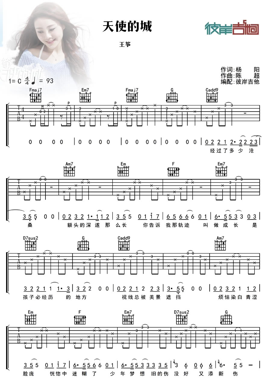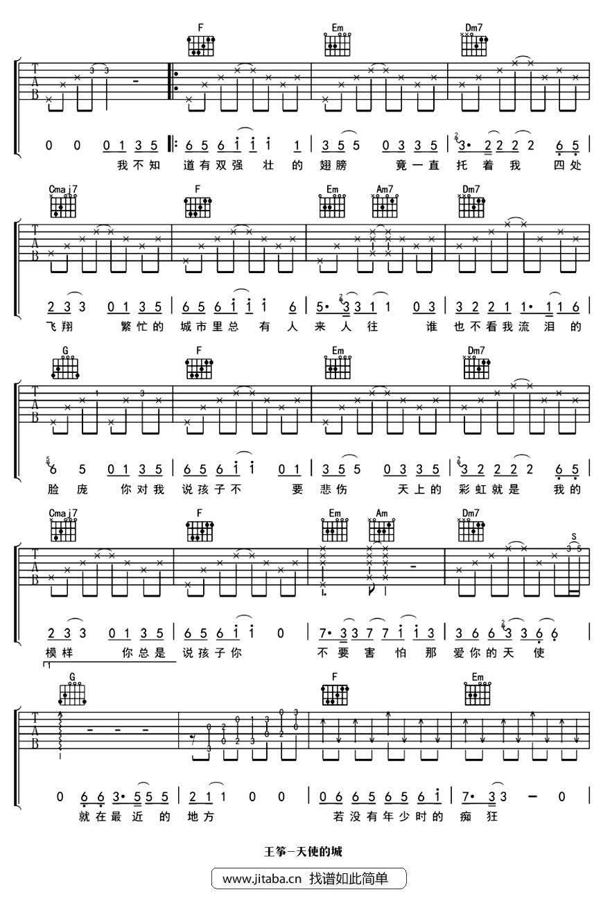 天使的城吉他谱 - 王筝 - 吉他弹唱谱