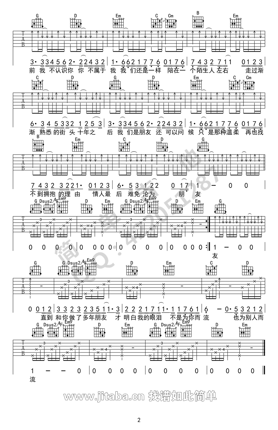 当前位置:琴谱网>吉他弹唱>十年