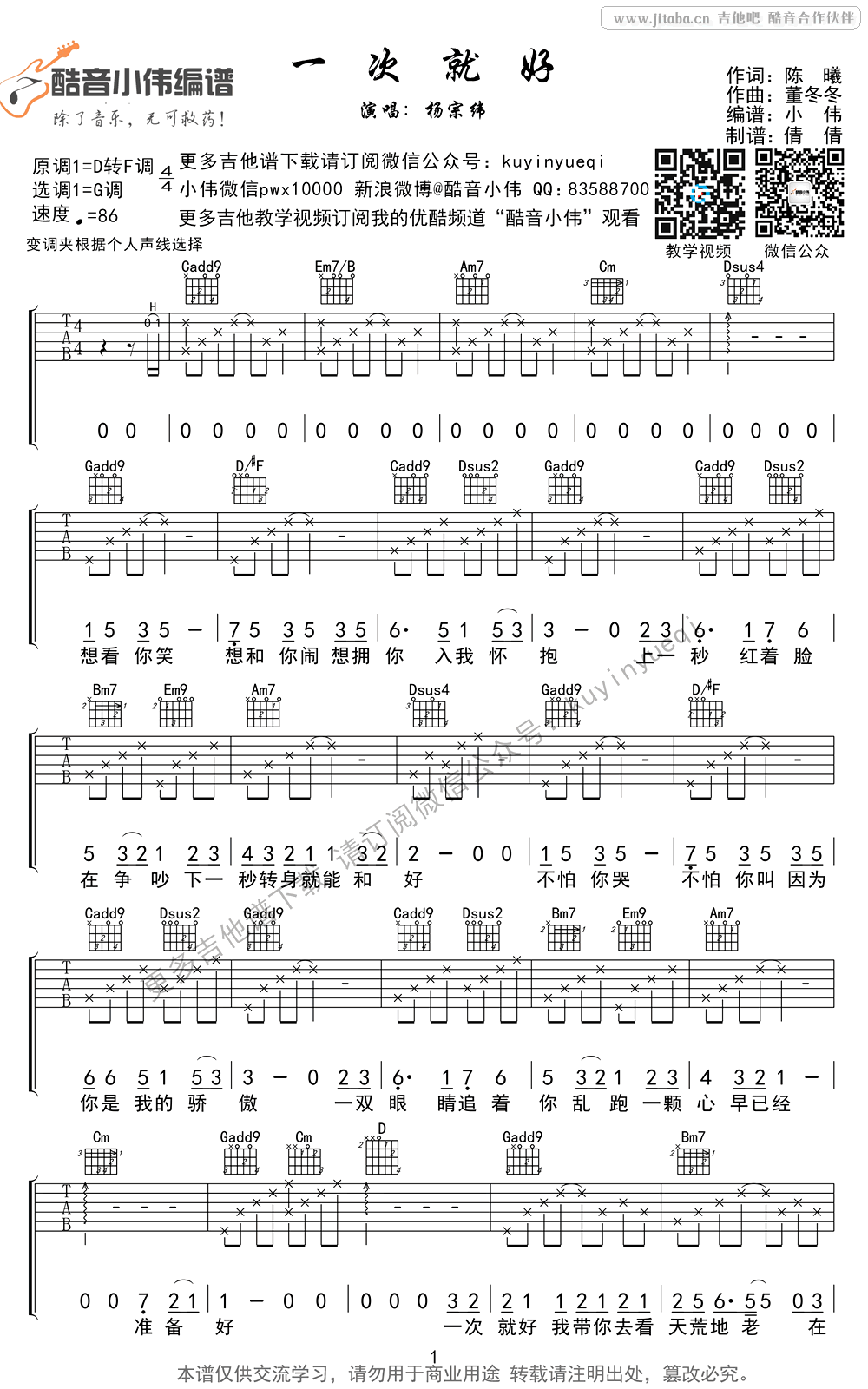 一次就好吉他谱 - G调吉他弹唱谱 - 原版