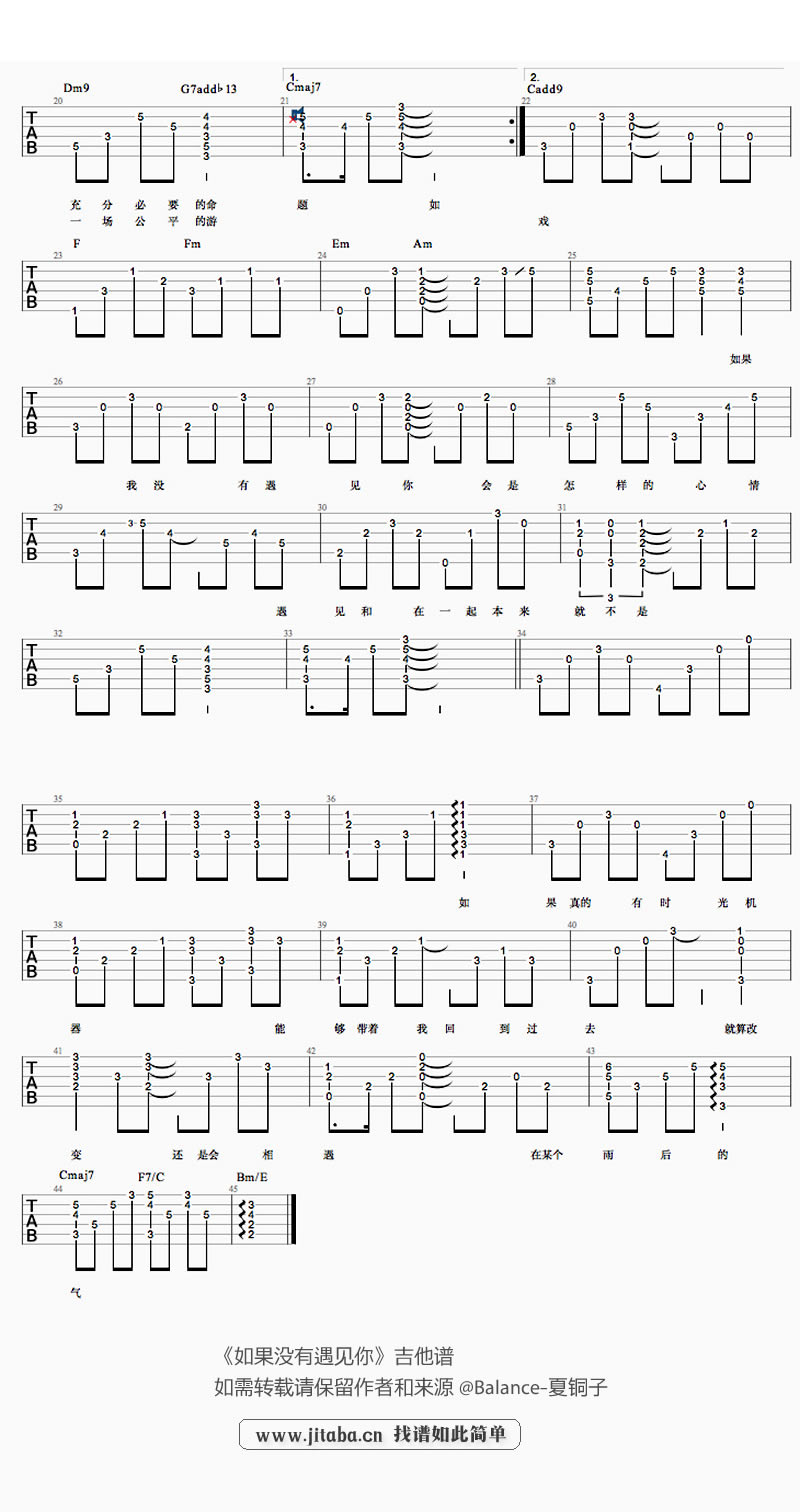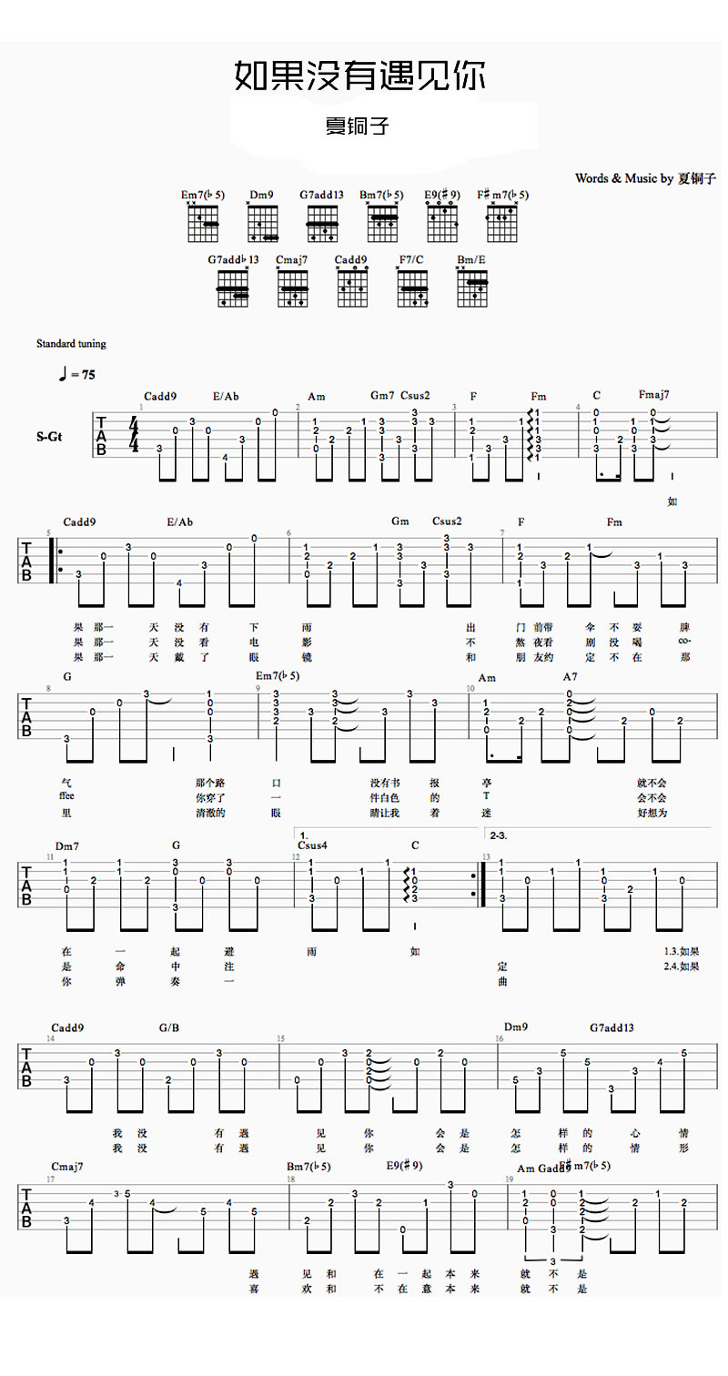如果没有遇见你吉他谱 - 夏铜子 - 吉他弹唱谱 - 原版