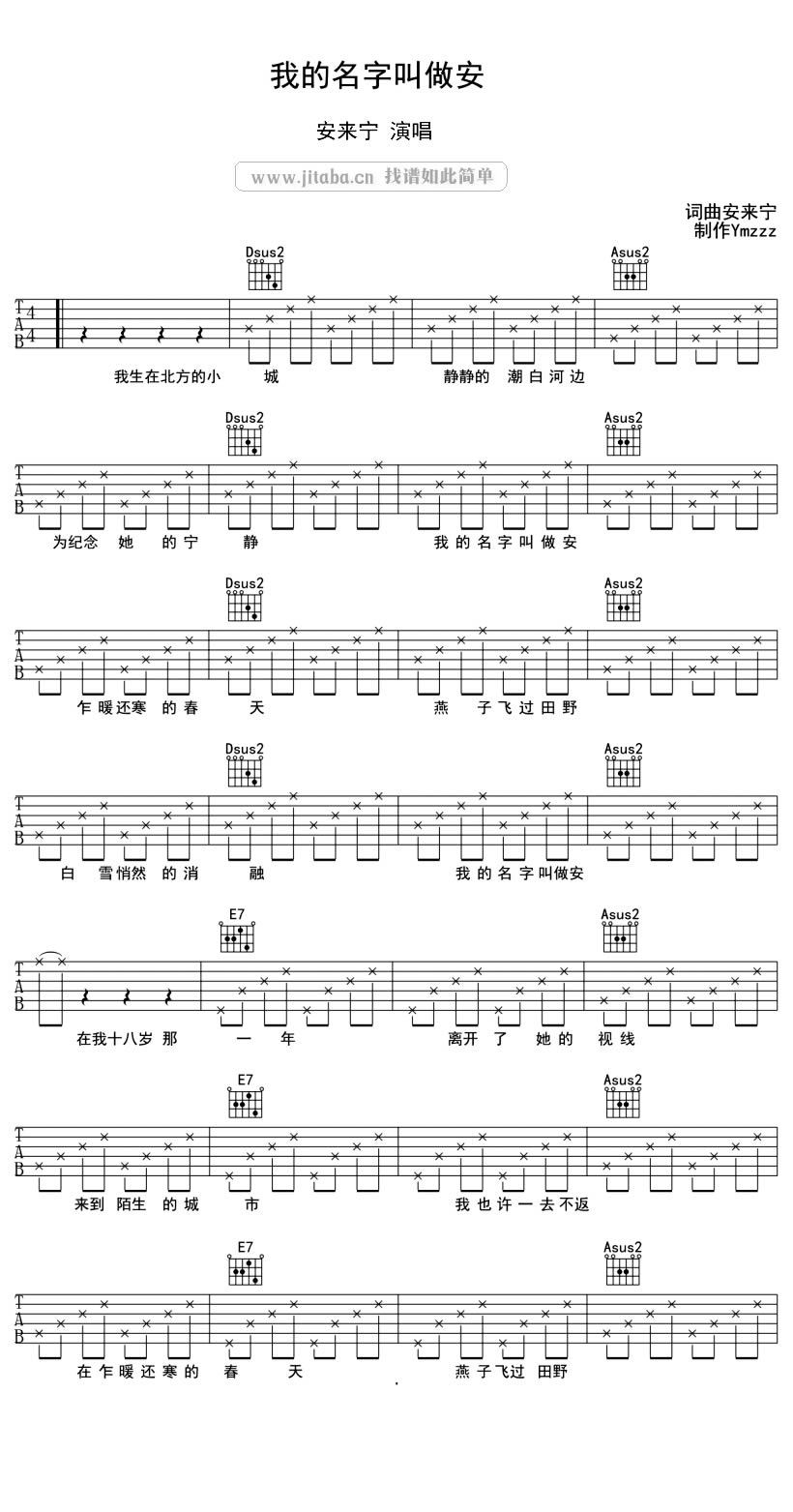 当前位置:琴谱网>吉他弹唱>我的名字叫做安