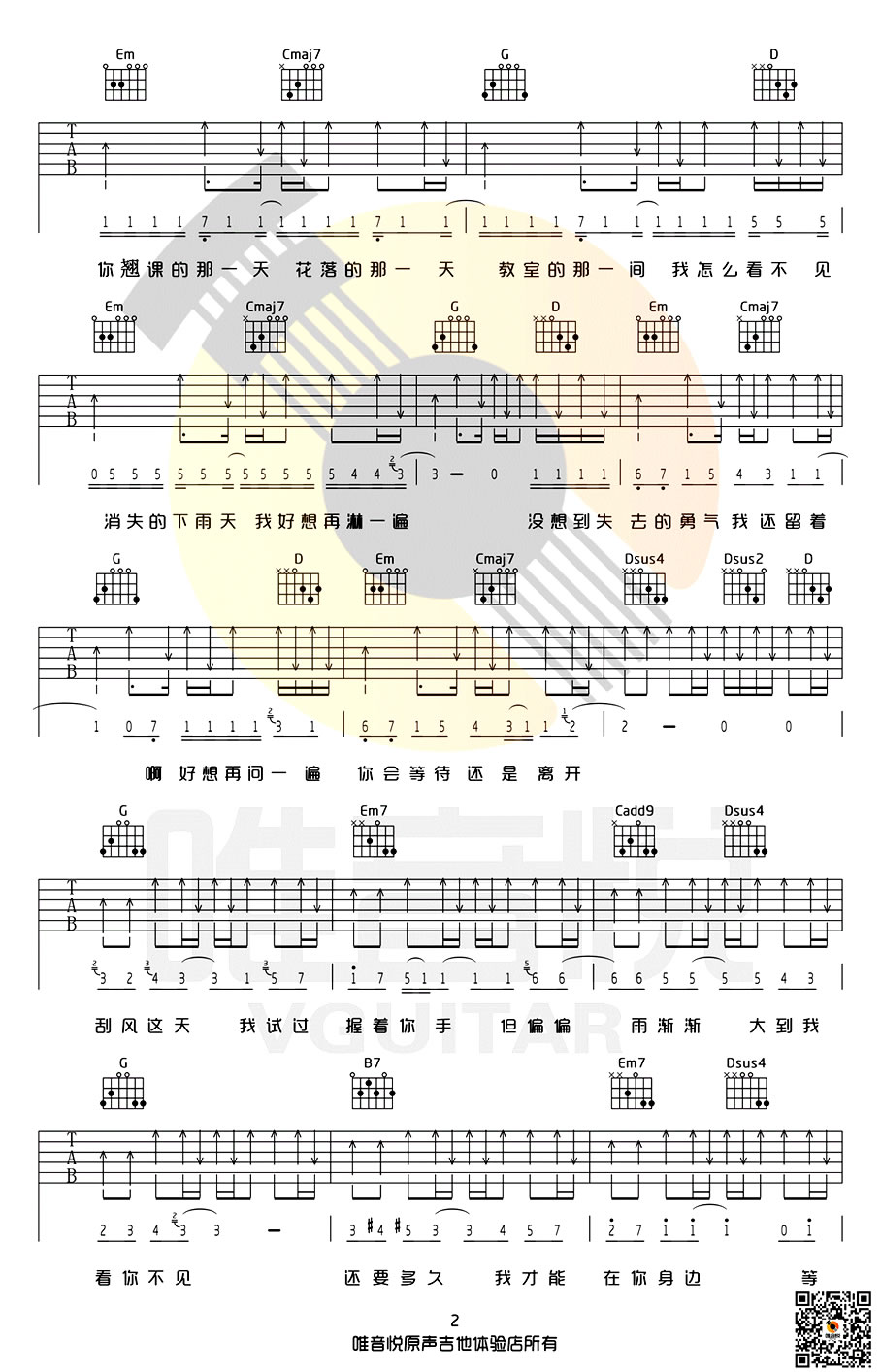 当前位置:琴谱网>吉他弹唱>周杰伦 晴天
