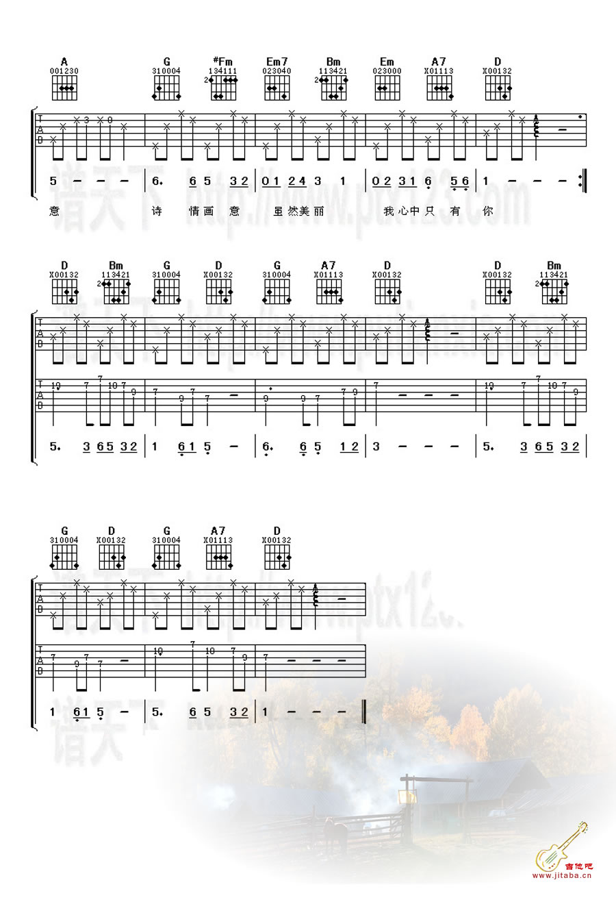 当前位置:琴谱网>吉他弹唱>又见炊烟