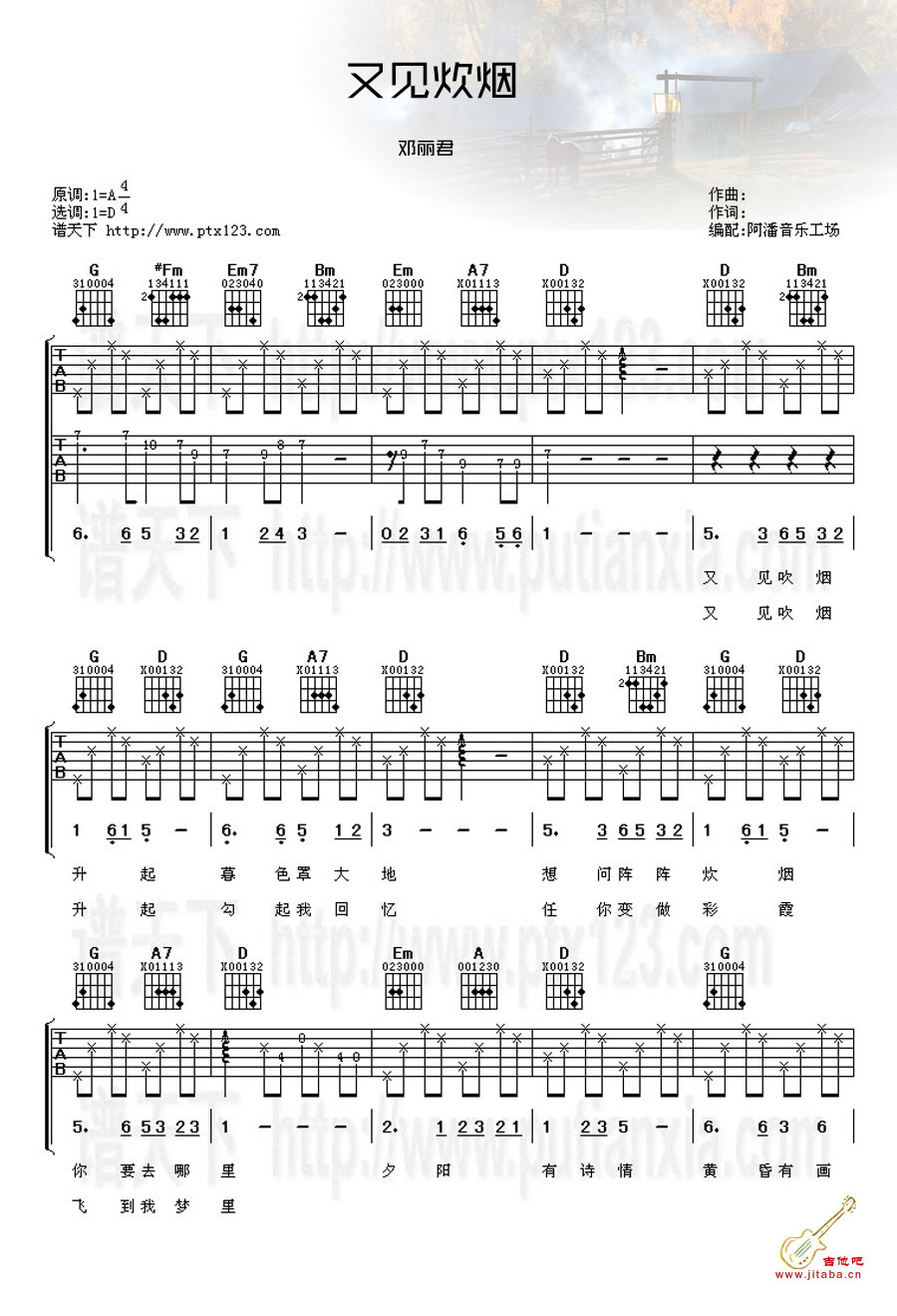 又见炊烟吉他谱 - 邓丽君 - 吉他弹唱谱