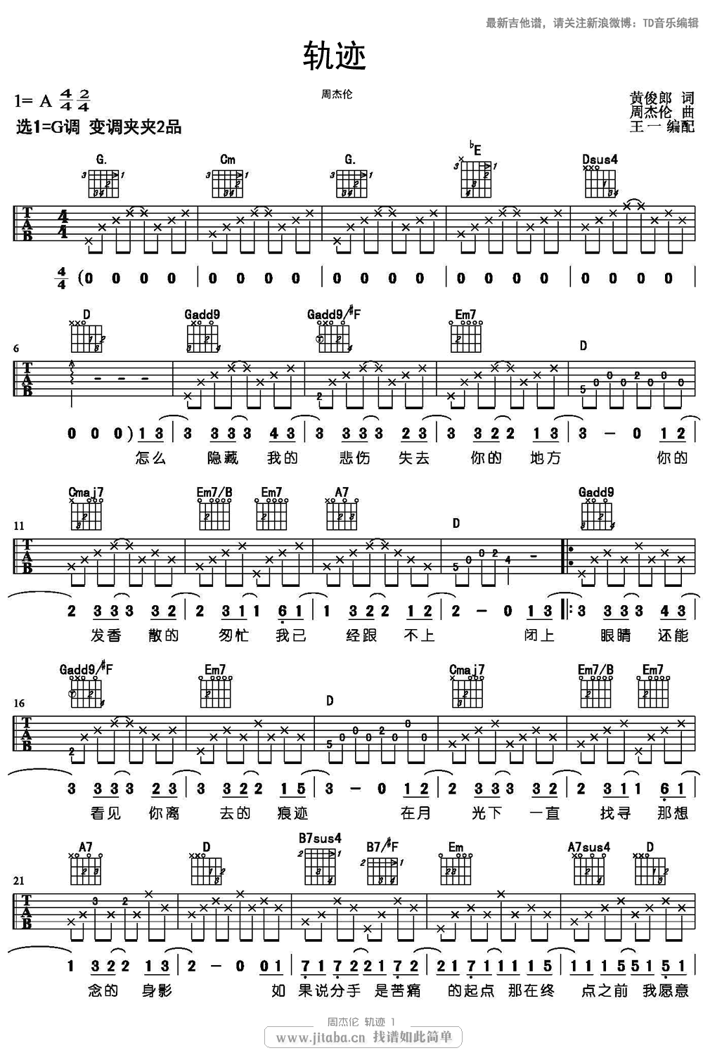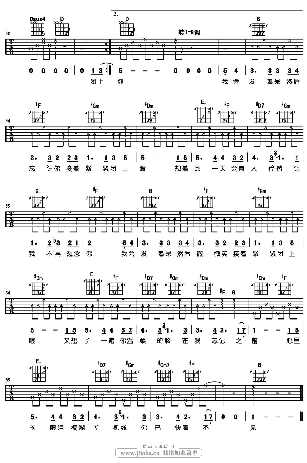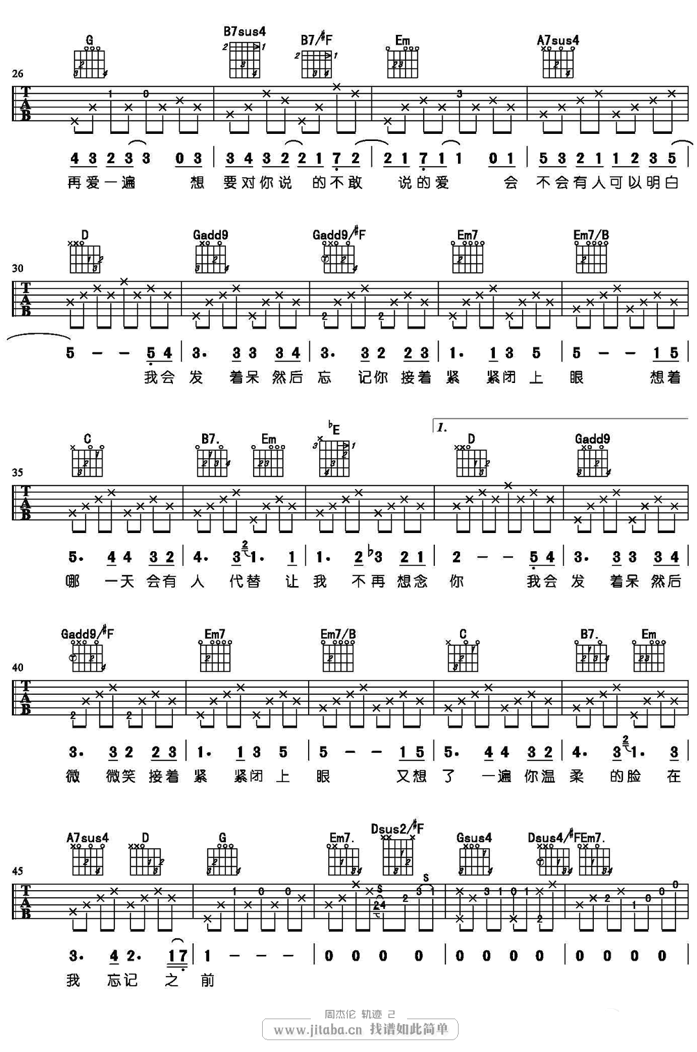 轨迹吉他谱 - 周杰伦 - 吉他弹唱谱