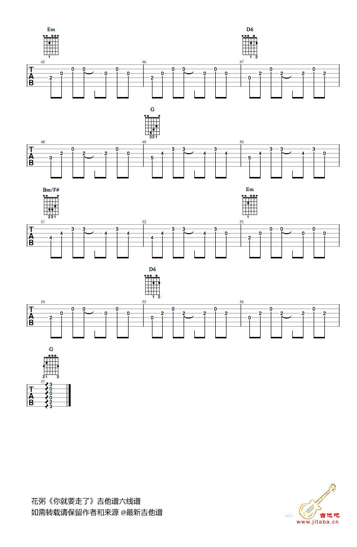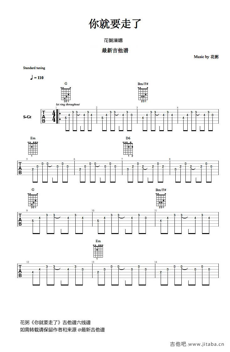 你就要走了吉他谱 - 花粥 - 吉他弹唱谱