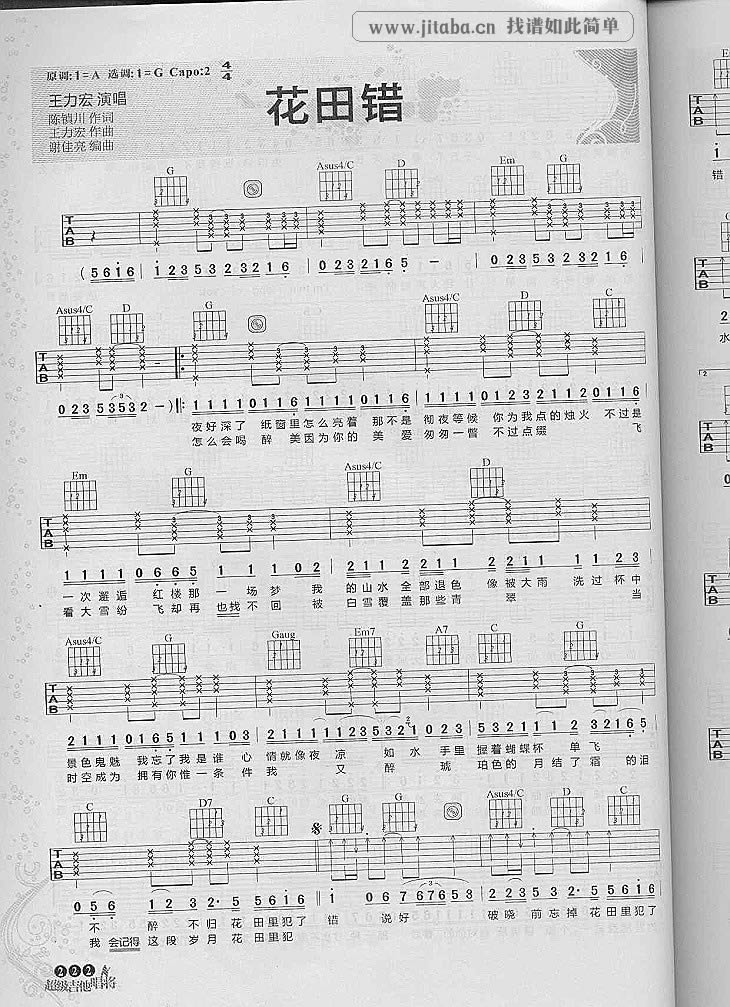 花田错吉他谱 - 王力宏 - 吉他弹唱谱