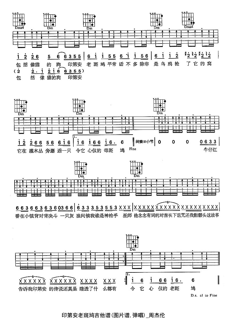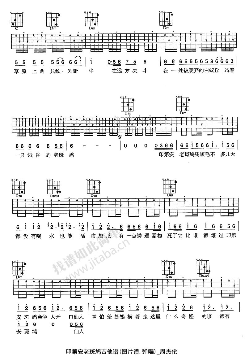 印第安老斑鸠吉他谱 - 周杰伦 - 吉他弹唱谱