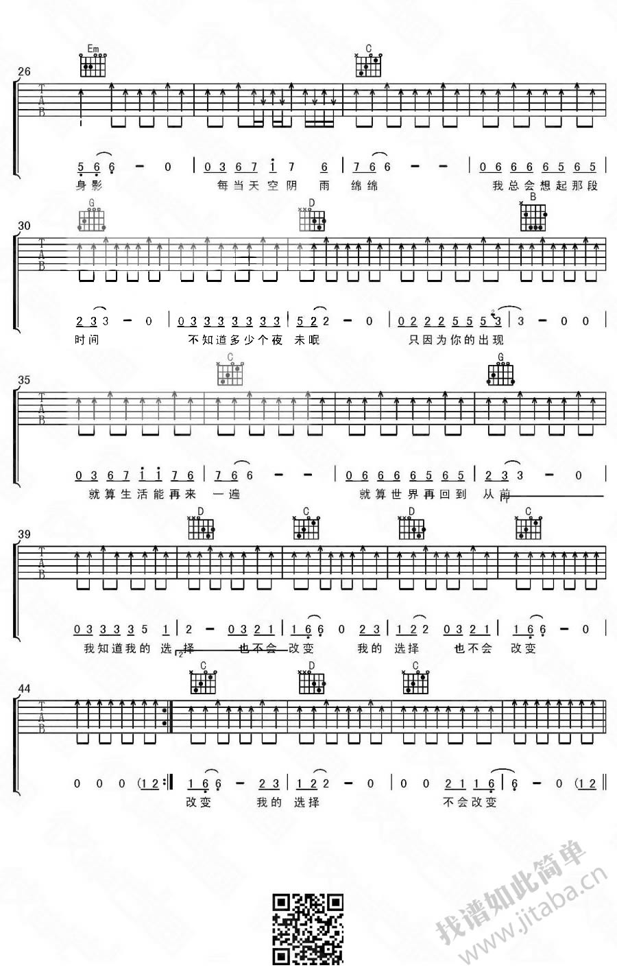 当前位置:琴谱网>吉他弹唱>不会改变