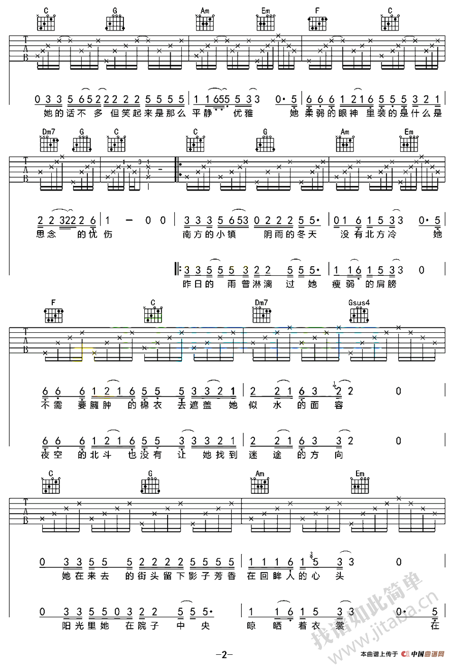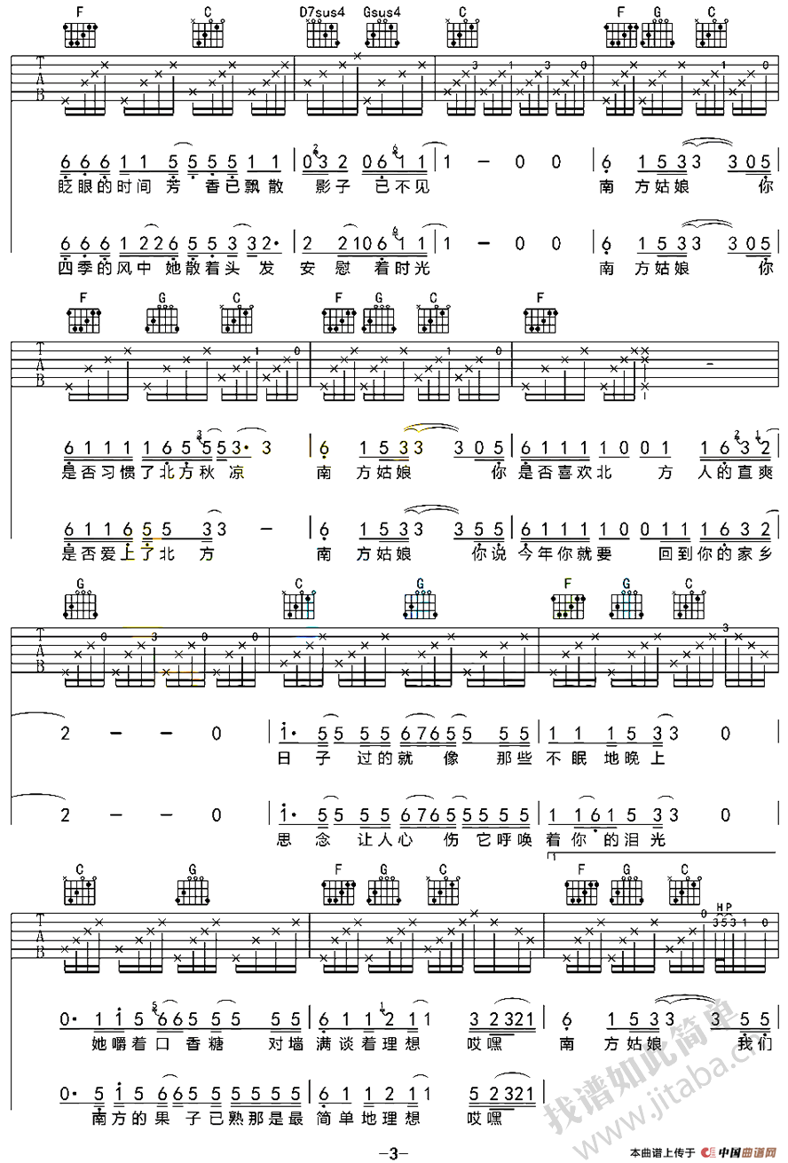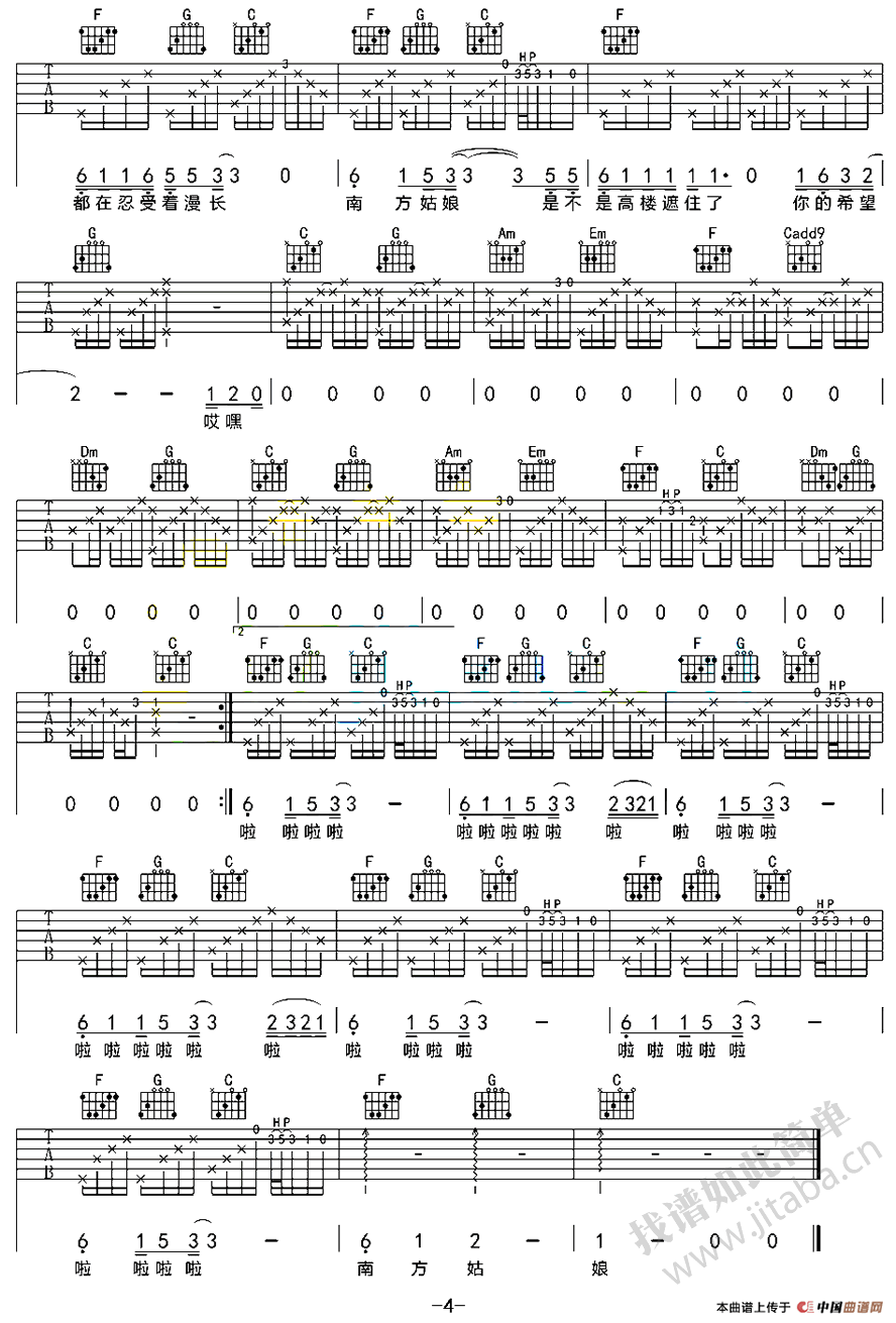 当前位置:琴谱网>吉他弹唱>南方姑娘