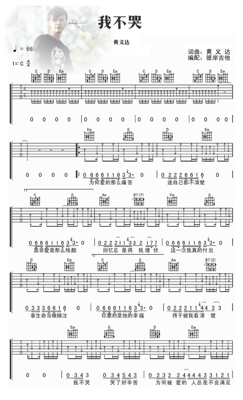 我不哭吉他谱 - 黄义达 - C调吉他弹唱谱