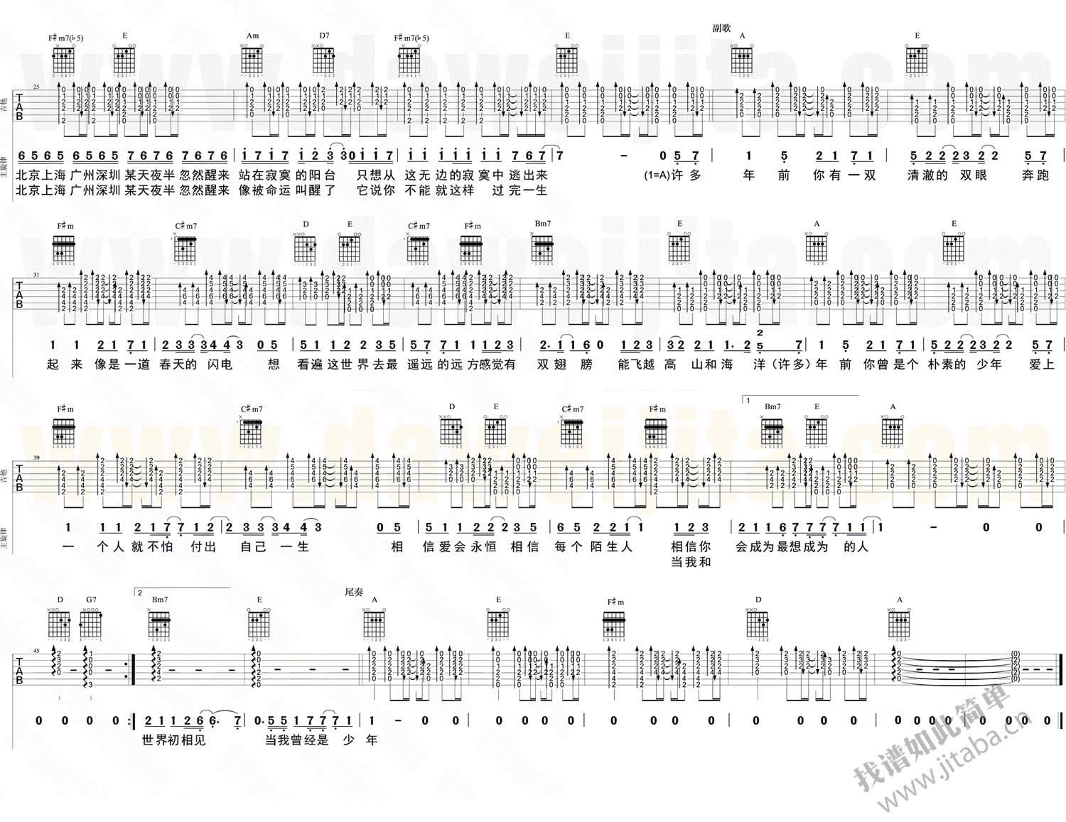 当前位置:琴谱网>吉他弹唱>你曾是少年