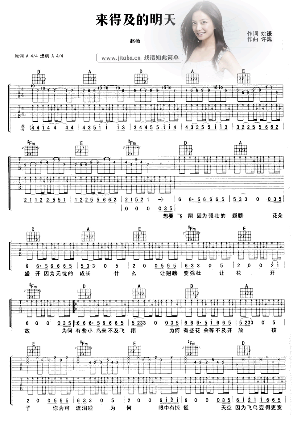 来得及的明天吉他谱 - 赵薇 - 吉他弹唱谱