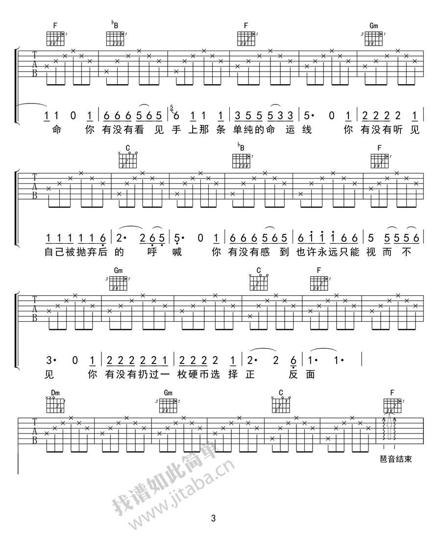 当前位置:琴谱网>吉他弹唱>硬币