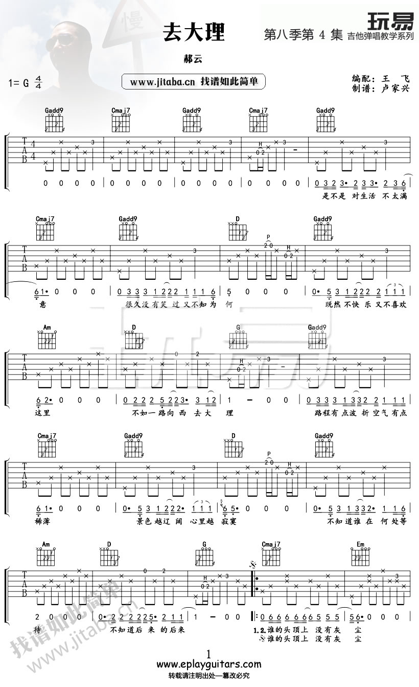 去大理吉他谱 - 郝云 - G调吉他弹唱谱