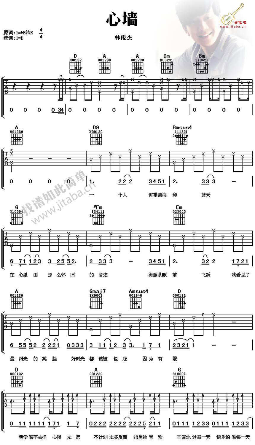 心墙吉他谱 - 林俊杰/郭静 - 吉他弹唱谱