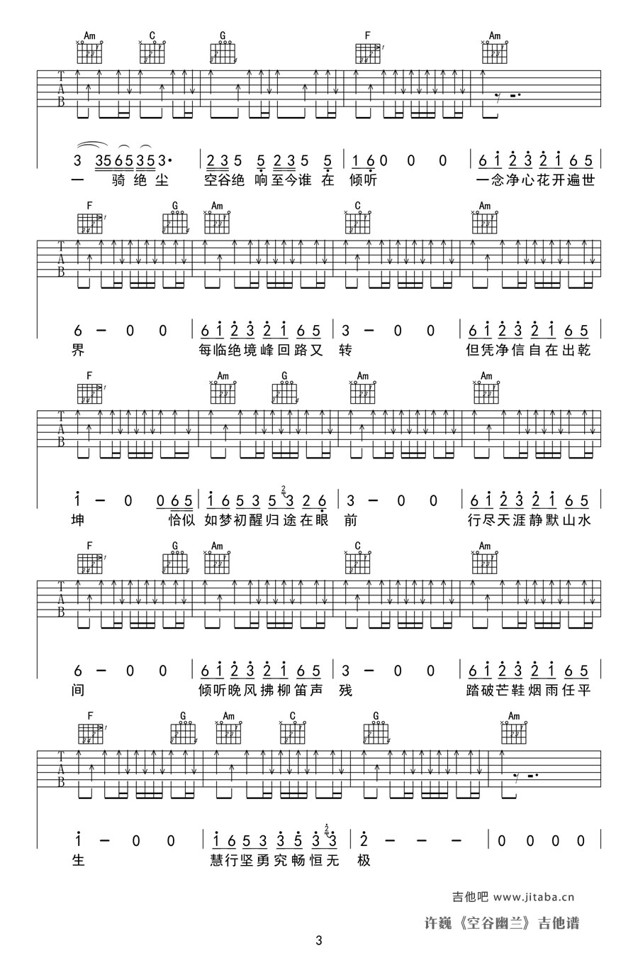 空谷幽兰六线吉他谱 - 许巍 - 吉他弹唱谱