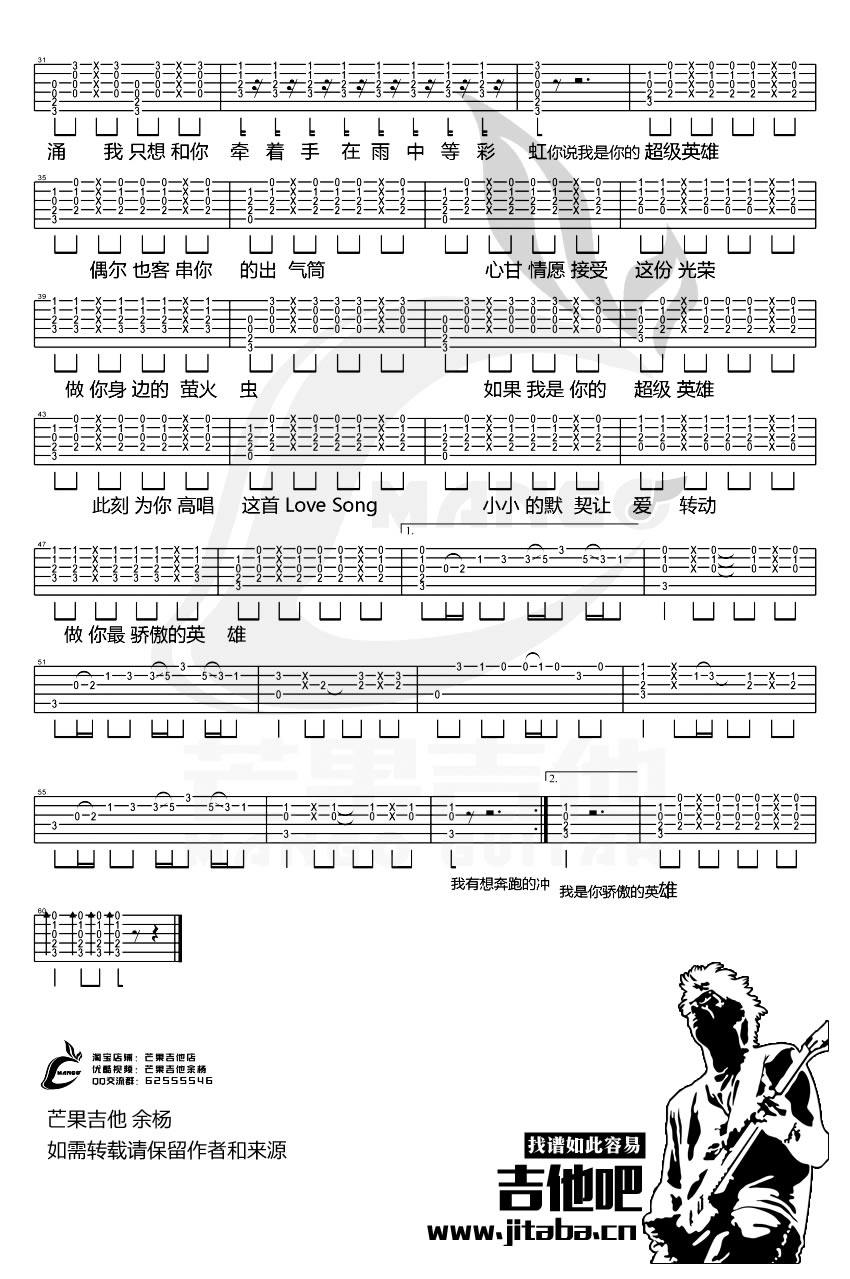 超级英雄吉他谱 - 吉他弹唱谱