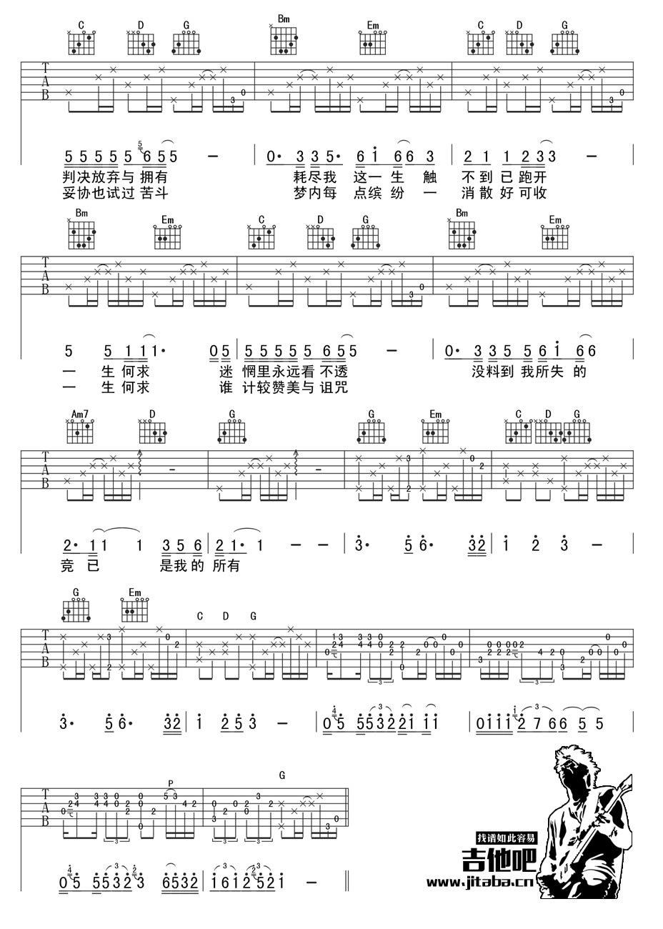 曲谱介绍: 陈百强一生何求吉他谱,G调和弦指法编配,一生何求六线谱,高清图片谱。一个时代的音乐骄子,香港情歌王子陈百强英年早逝,他留给我们的那些拨动心弦的旋律,无论冷暖都不曾停休,只是转回头去时已匆匆多年。岁月带不走的,是那些无尽的伤感与声声叹息,这首《一生何求》深情忧伤,是粤语流行歌曲经典音乐作品。