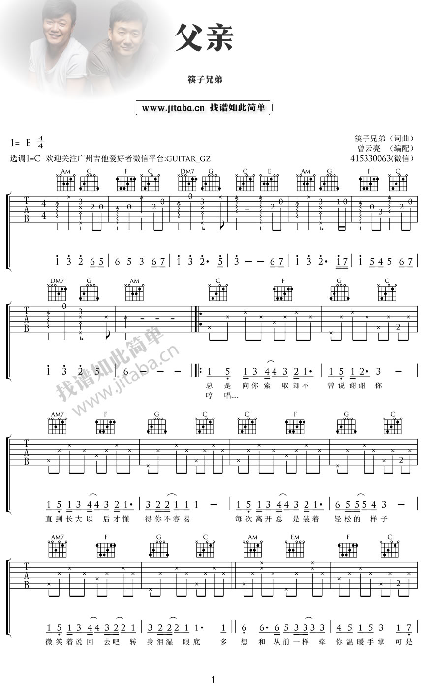 父亲吉他谱 - 筷子兄弟 - C调吉他弹唱谱