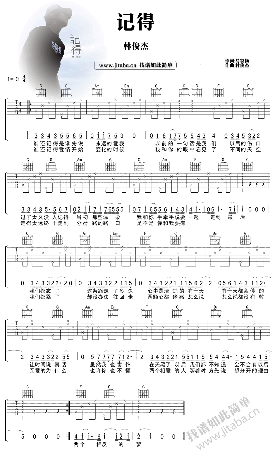 记得吉他谱 - 林俊杰 - C调吉他弹唱谱