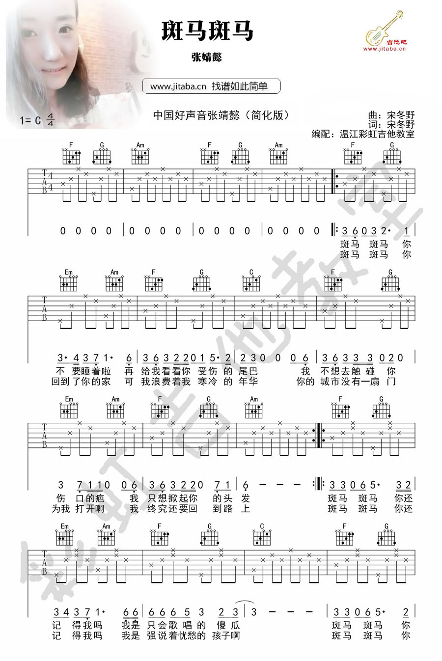 斑马斑马吉他谱 - 张婧懿 - 吉他弹唱谱