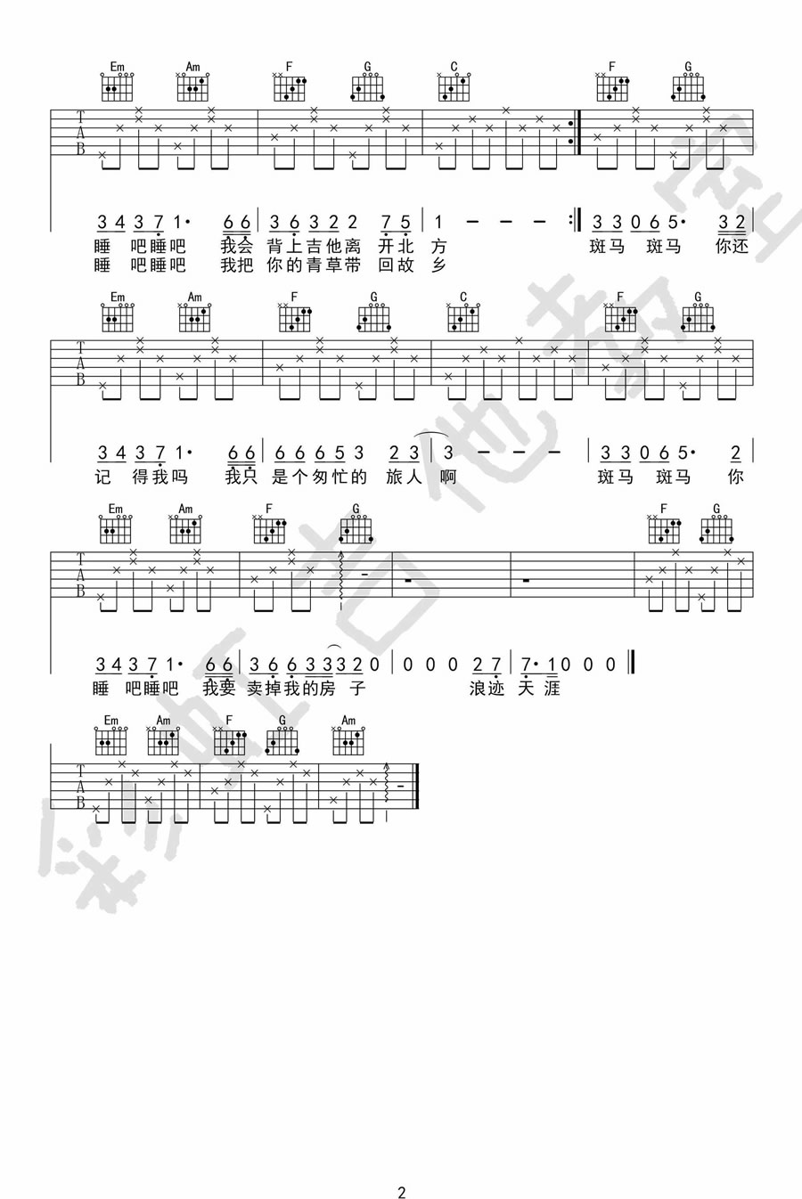 当前位置:琴谱网>吉他弹唱>斑马斑马