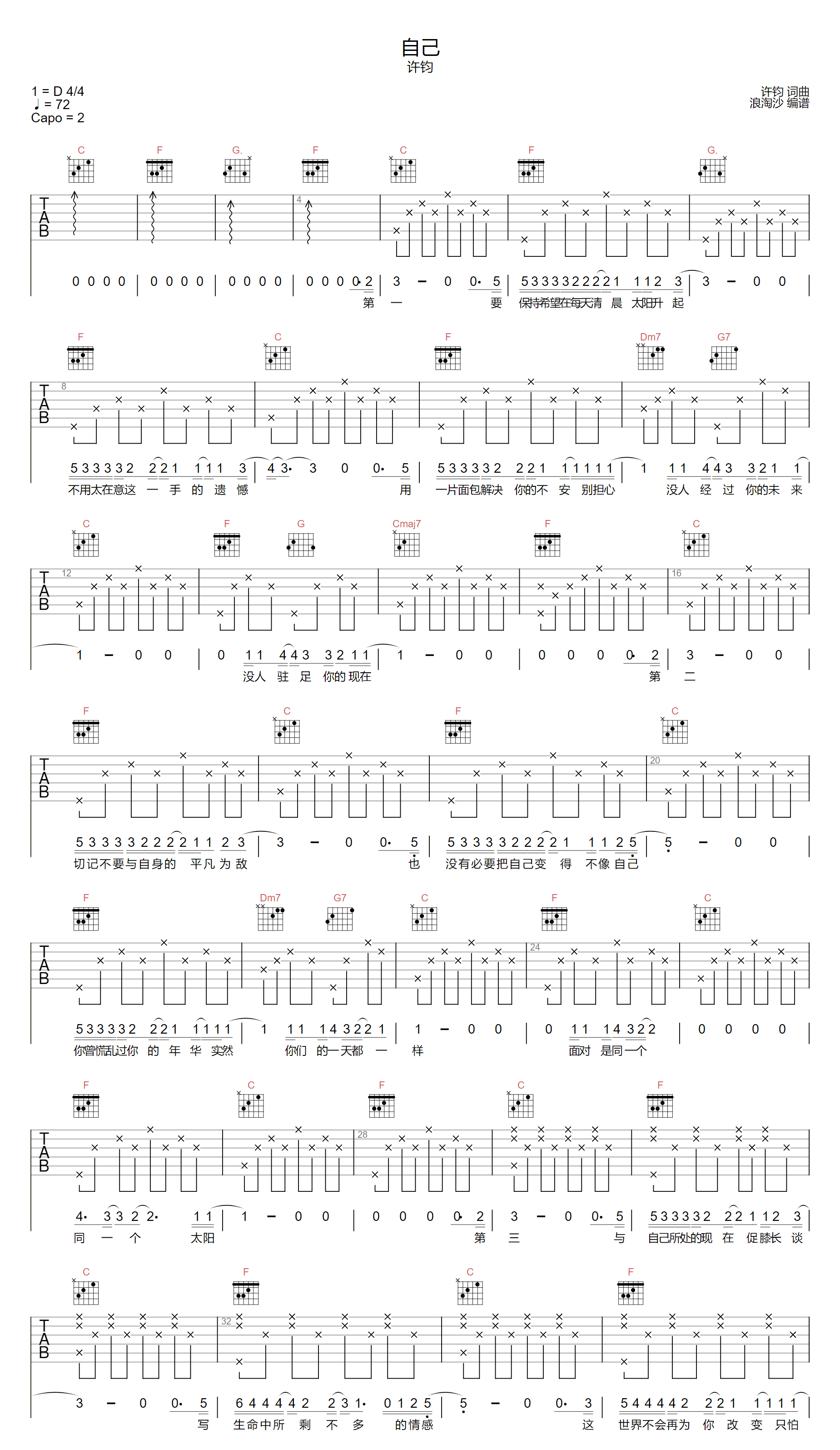 自己吉他谱 - 许钧 - C调吉他弹唱谱 - 原版