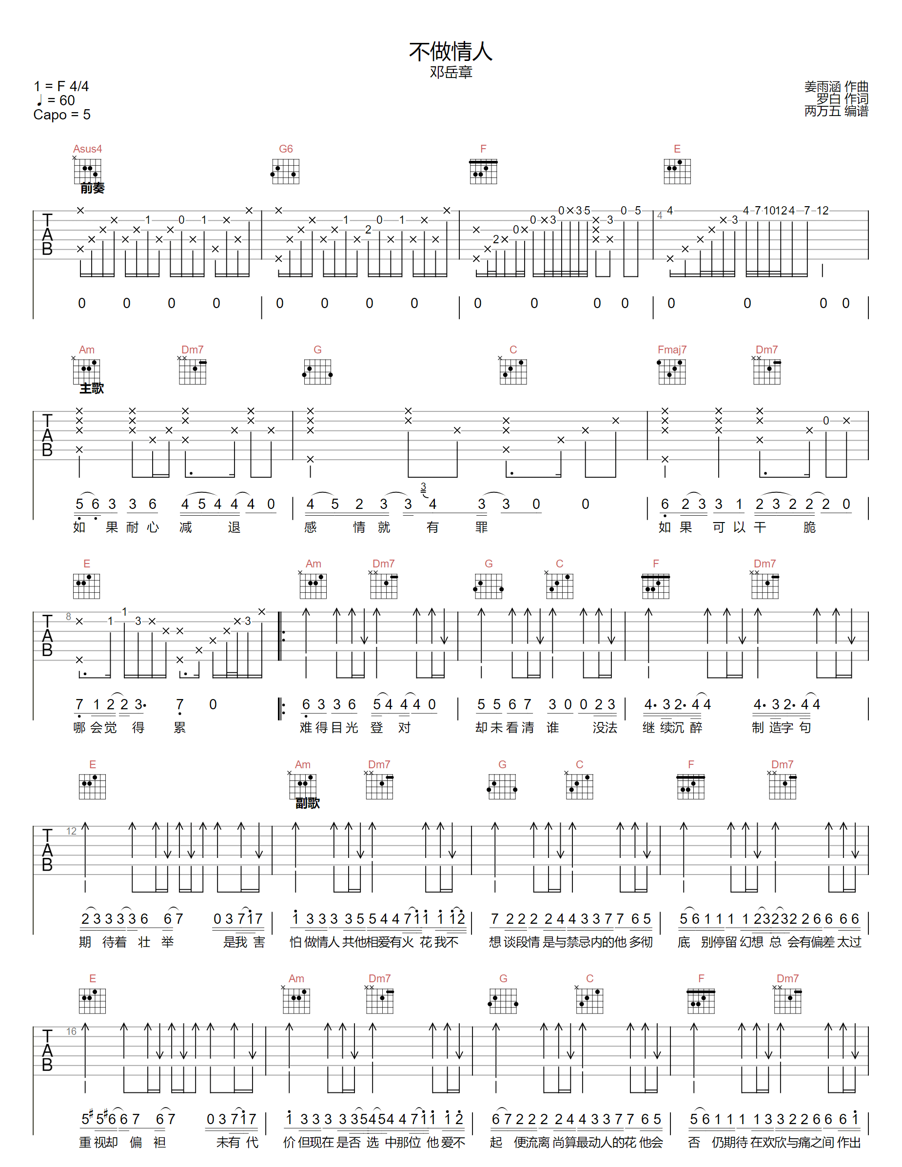 不做情人吉他谱 - 邓岳章 - C调吉他弹唱谱 - 原版