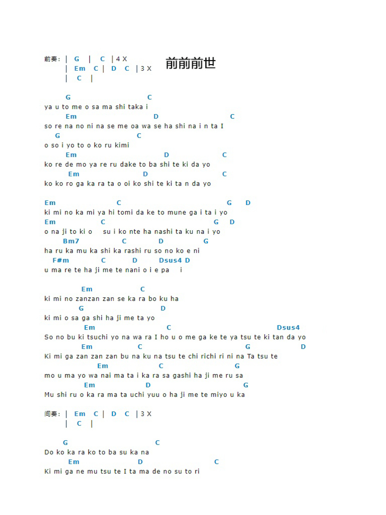 前前前世吉他谱 - 日本乐队RADWIMPS - G调吉他弹唱谱 - 和弦谱