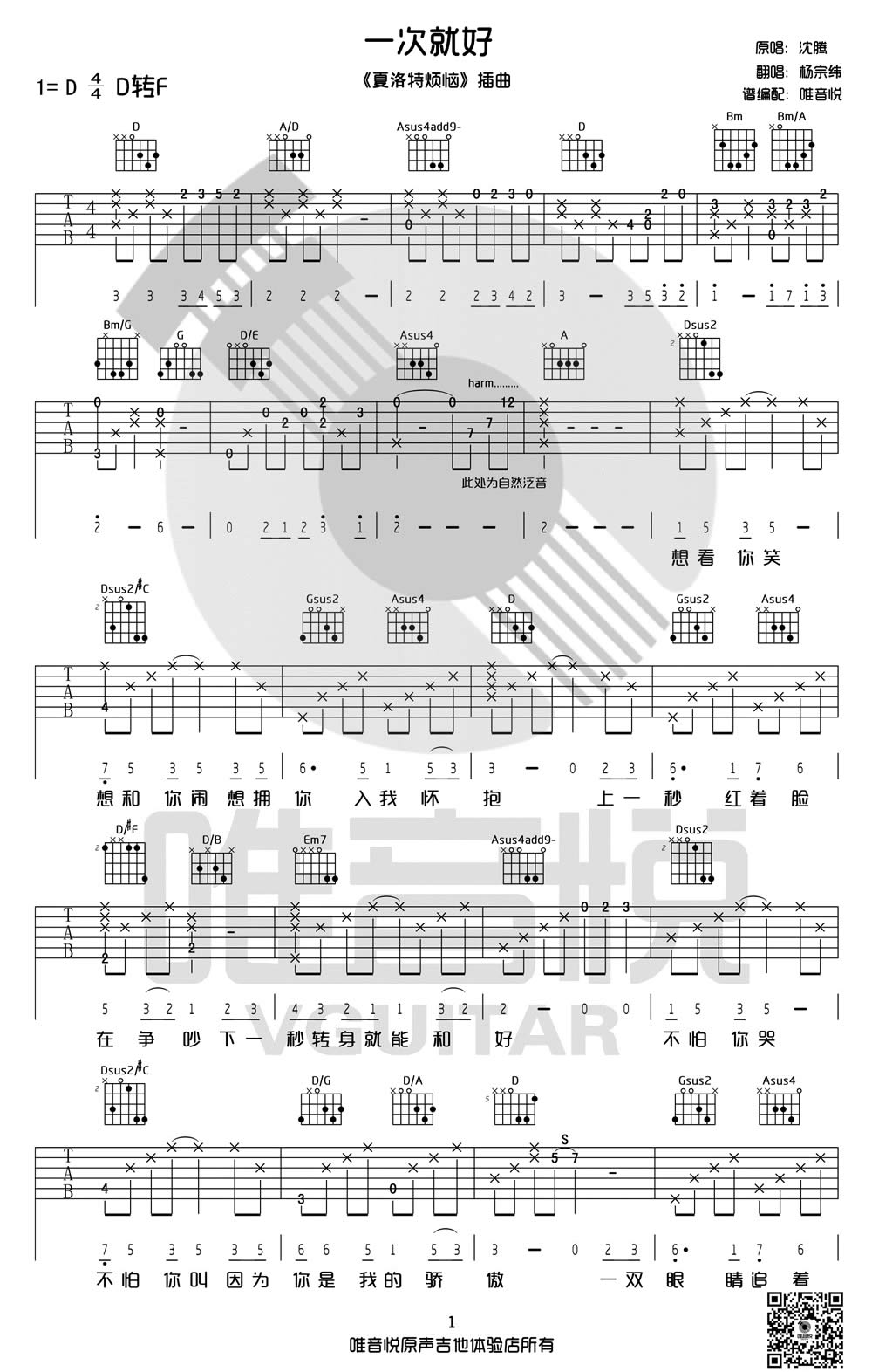 一次就好吉他谱 - 杨宗纬(沈腾) - 吉他弹唱谱