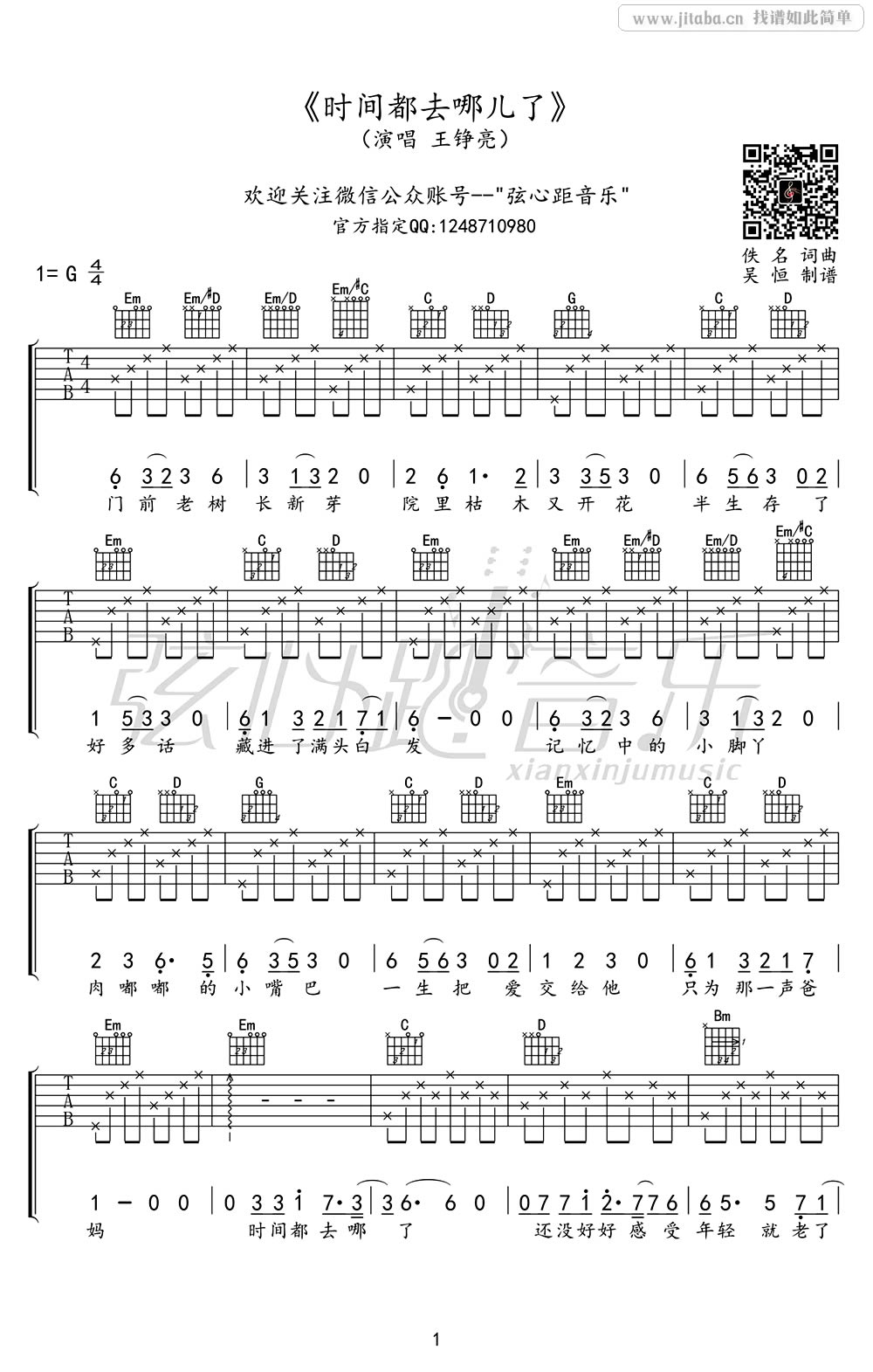 曲谱介绍: 王铮亮时间都去哪儿了吉他谱,简易G调六线谱编配,时间都去哪儿了吉他弹唱谱,图片谱高清版,感谢吴恒编配。一年的时光就轻飘飘的过去了,匆匆又匆匆!时间都去哪儿了?走的不舍,来的匆忙,还没做好准备呢,就这样被安排好了。生活就是如此,人生就是如此,就在匆匆之中匆匆而过!