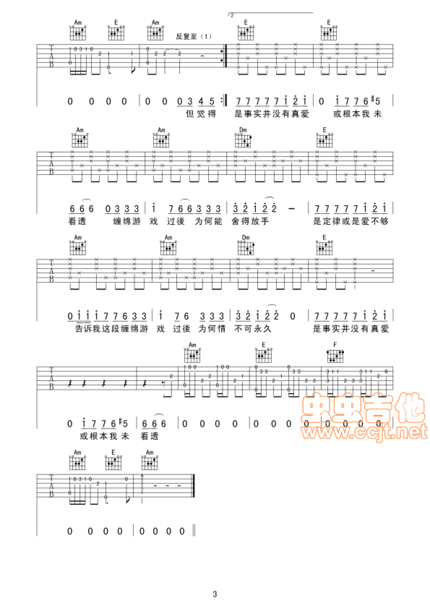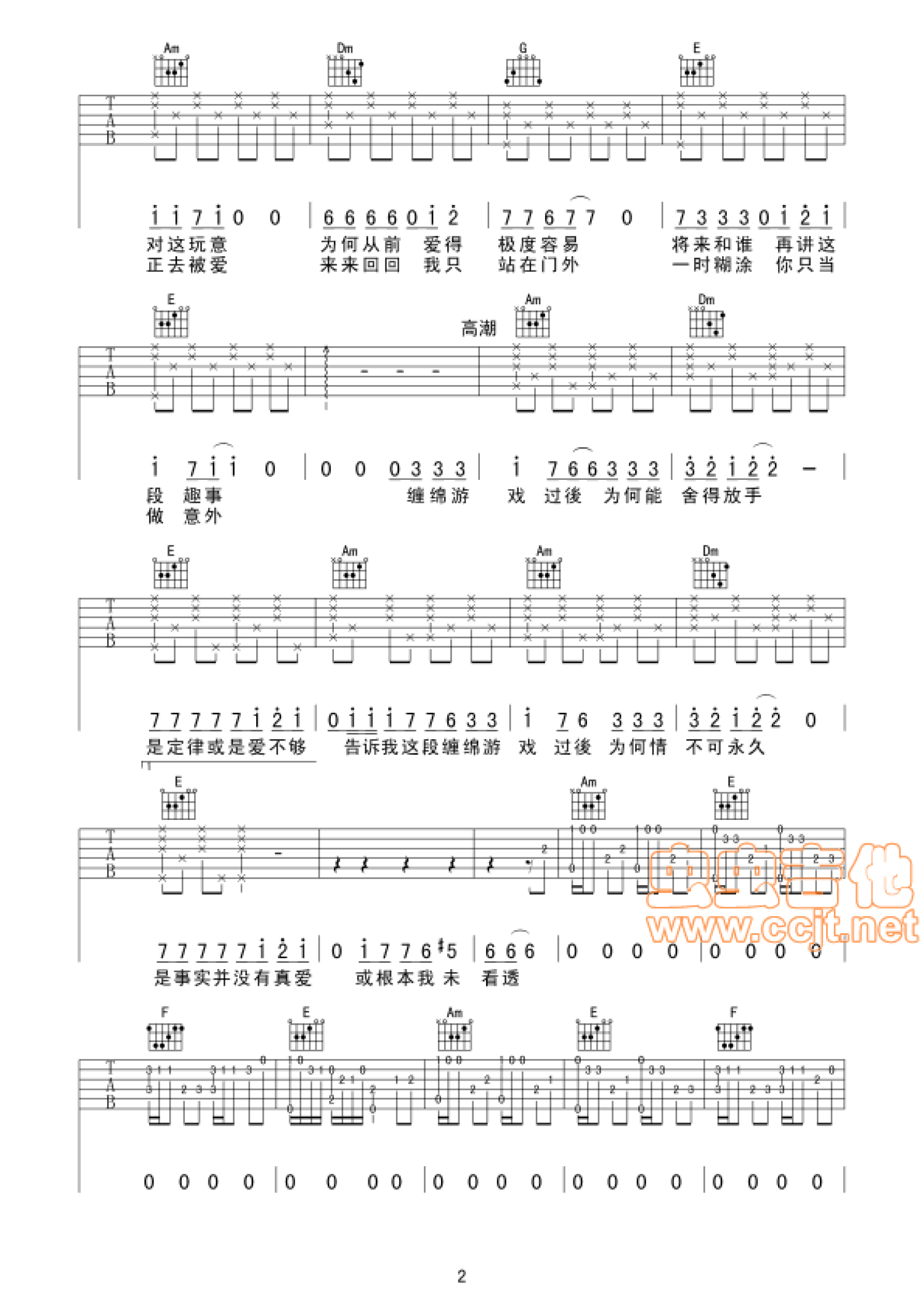 当前位置:琴谱网>吉他弹唱>缠绵游戏