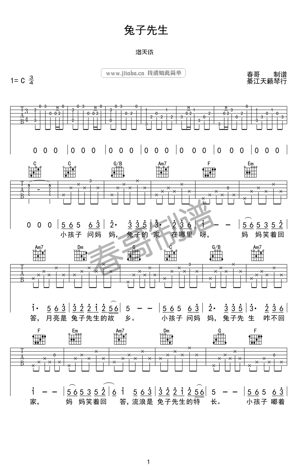兔子先生吉他谱 - 洛天依 - C调吉他弹唱谱