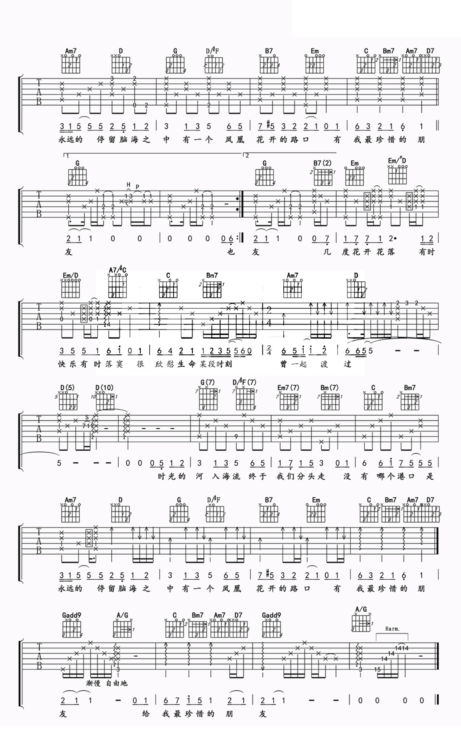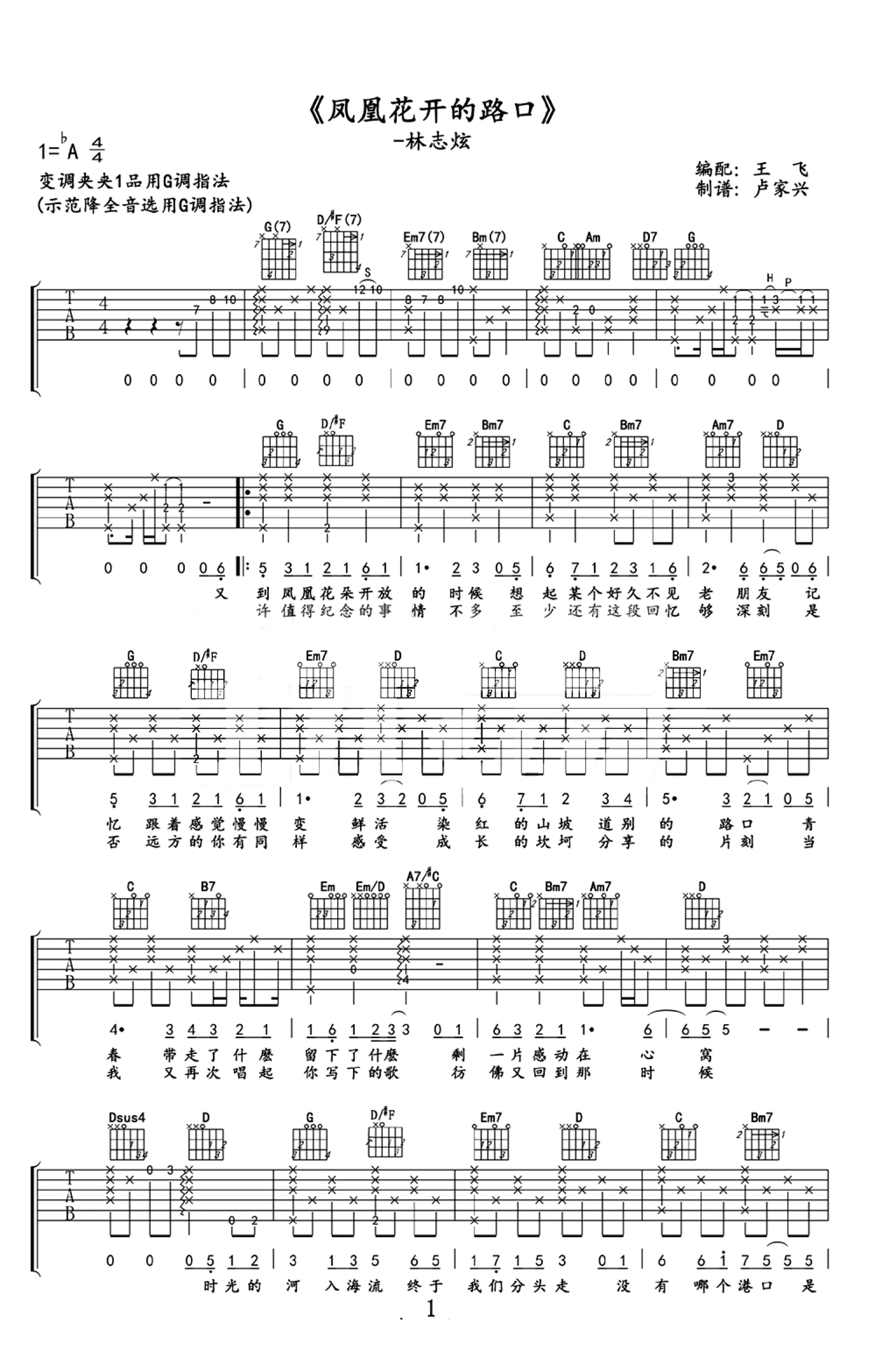 曲谱介绍: 林志炫《凤凰花开的路口》吉他谱,原调bA,变调夹夹1品,用G调指法。淡淡的美丽,悠悠的回忆,一首毕业伤感歌曲,展现了同学们告别彼此,向着新的方向奔跑的画面,伴随着对未来的渴望。时光轻浅,流水匆匆,岁月中我们终会成长。