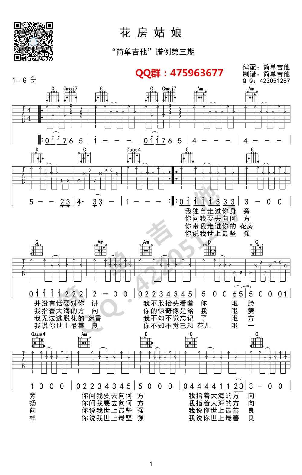 当前位置:琴谱网>吉他弹唱>花房姑娘