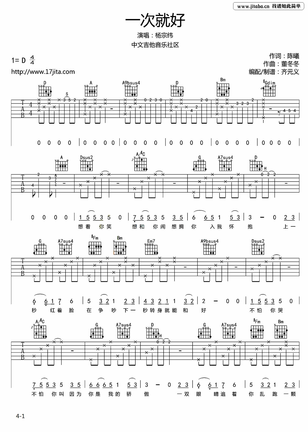 一次就好吉他谱 - 杨宗纬 - 吉他弹唱谱