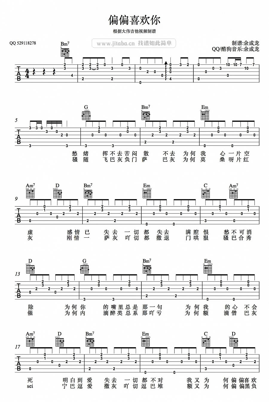 当前位置:琴谱网>吉他弹唱>偏偏喜欢你