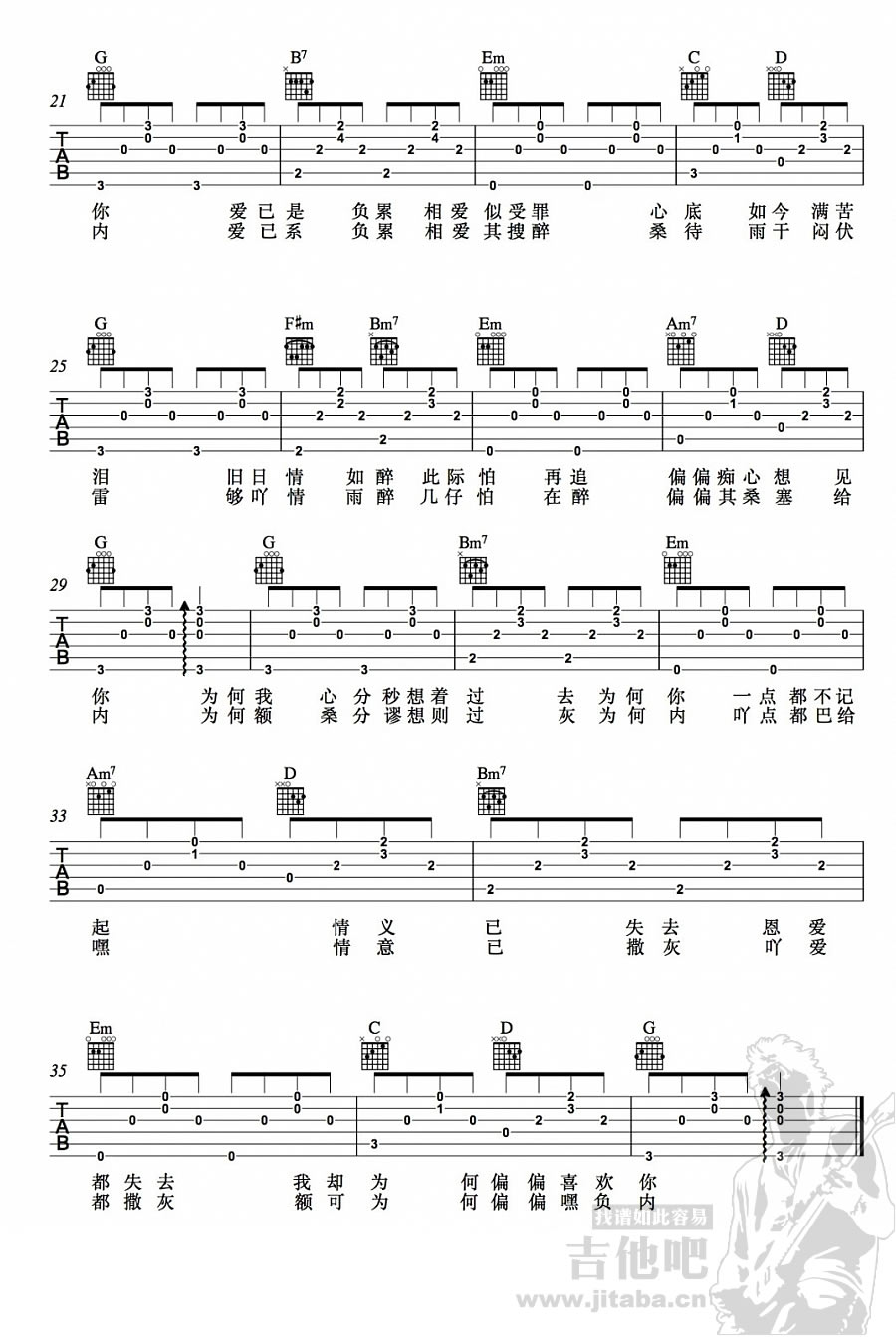 曲谱介绍: 陈百强的粤语经典歌曲《偏偏喜欢你》吉他谱,六线谱编配,图片谱带粤语歌词音译。偏偏喜欢你吉他弹唱谱,根据大伟吉他视频扒谱制作,感谢余成龙制谱分享。看过电影《港囧》后,那么多老歌,但脑子里一直萦绕着陈百强《偏偏喜欢你》的旋律,因为名字而喜欢一首歌 因为一首歌而想念一个人。陈百强歌曲谱整理收藏。