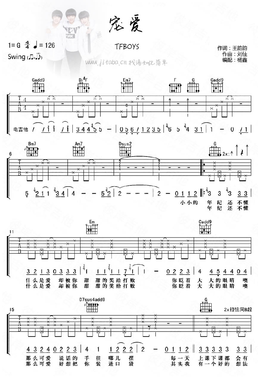 宠爱吉他谱 - TFBOYS - 吉他弹唱谱