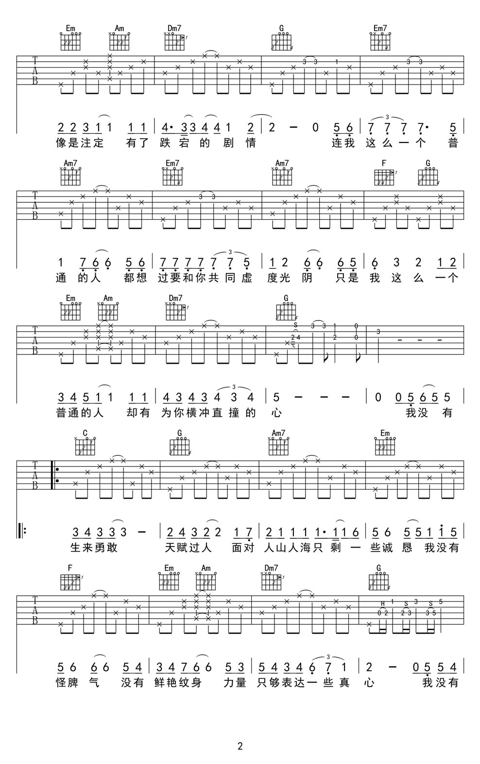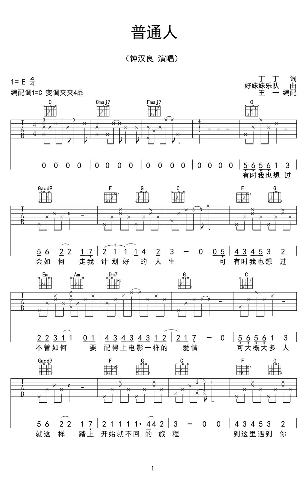 曲谱介绍: 钟汉良普通人吉他谱,电影《横冲直撞好莱坞》主题曲,普通人六线谱,原调E编配调C,变调夹夹4品。好妹妹乐队作曲的一首舒缓从容的歌曲,钟汉良的歌声像流淌的河,在夜里静默,深沉温柔又充满力量。随谱附上王一老师的吉他弹奏示范。