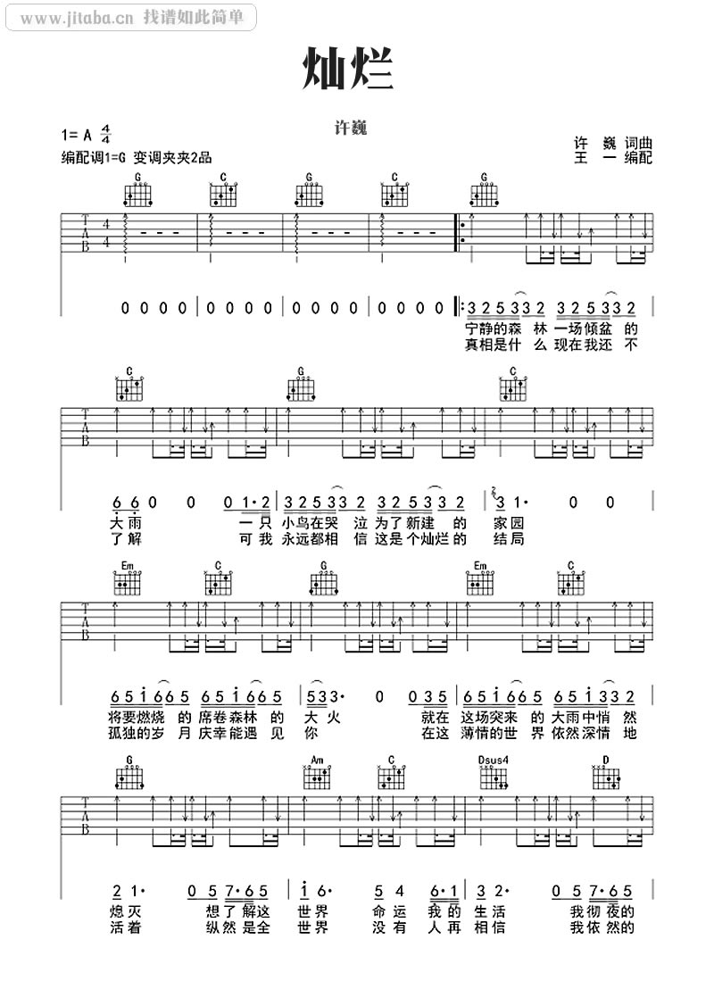 吉他弹唱G调来源:许巍《灿烂》六线谱-G调332 浏览2024-02-20 17:31发布图谱共3页