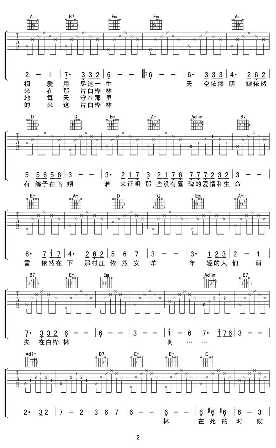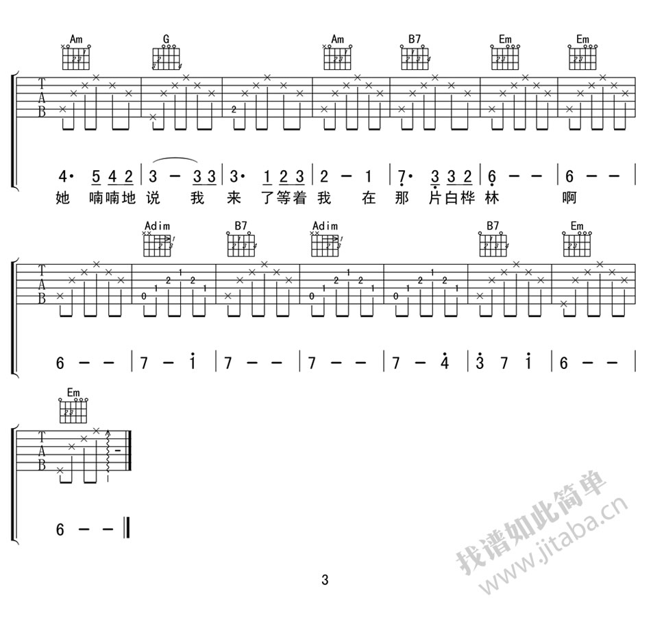 当前位置:琴谱网>吉他弹唱>白桦林