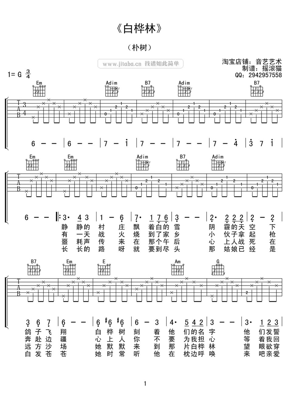 曲谱介绍: 朴树白桦林吉他谱,G调六线谱编配,白桦林吉他弹唱谱,高清图片谱三张谱例。朴树经典的歌声纯粹忧郁,那略带伤感的嗓音和歌词中那凄美的爱情故事,曾经感动的人泪流满面,唱出每个拥有迷茫春春人的心声。白桦林吉他谱,感谢音艺艺术摇滚猫制谱分享。