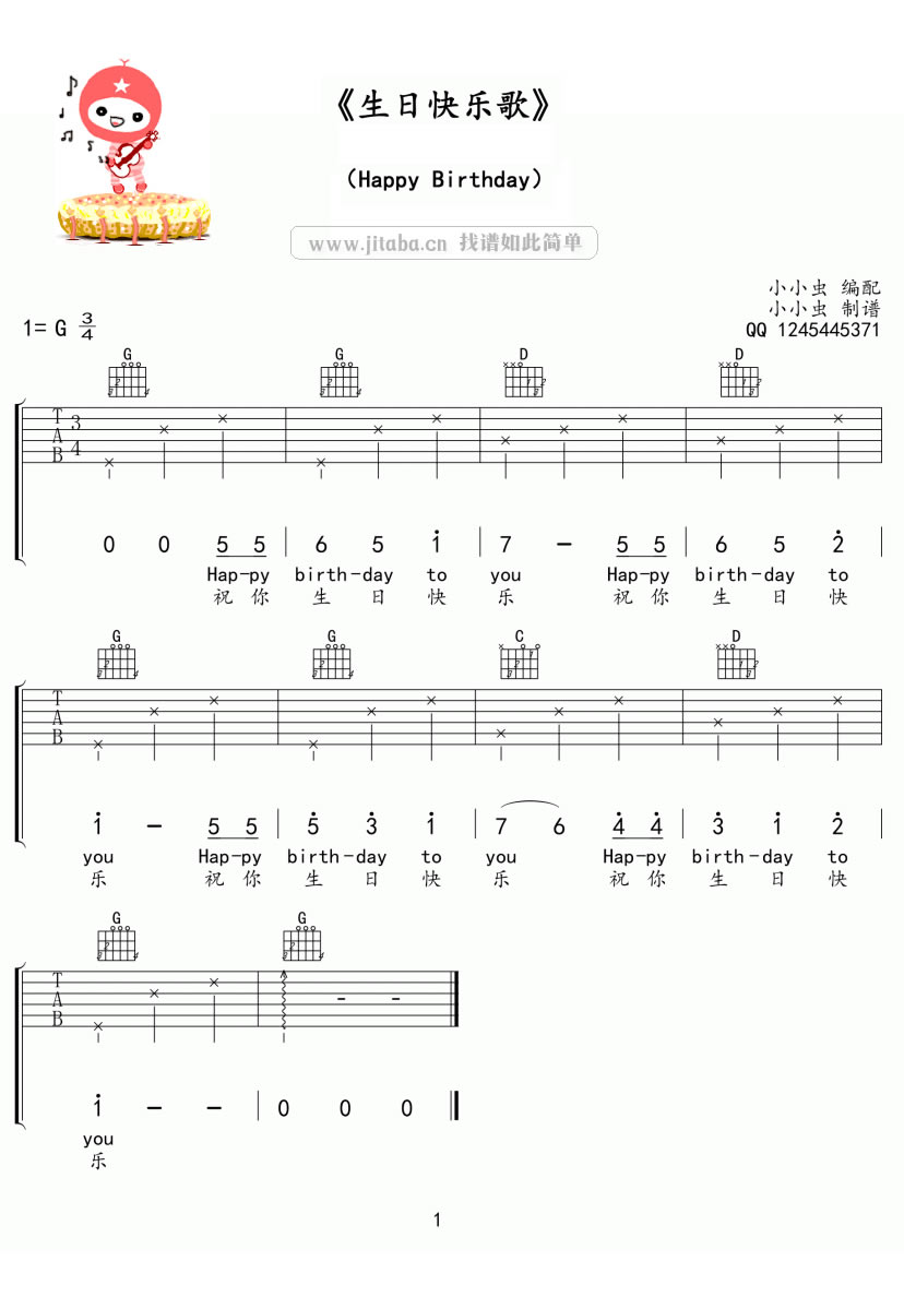 生日快乐歌吉他谱 - 吉他弹唱谱