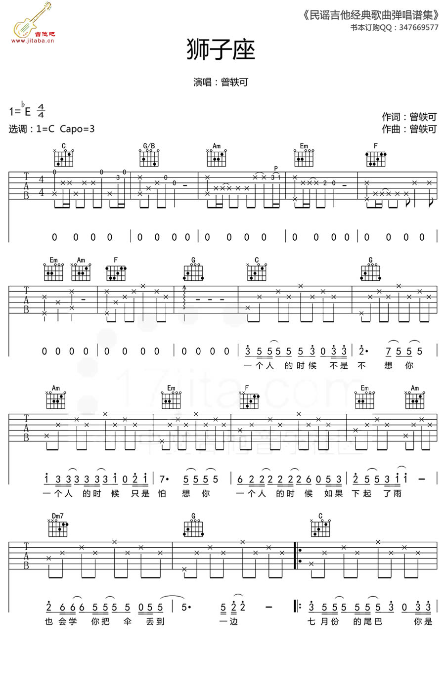 狮子座吉他谱 - 曾轶可 - C调吉他弹唱谱
