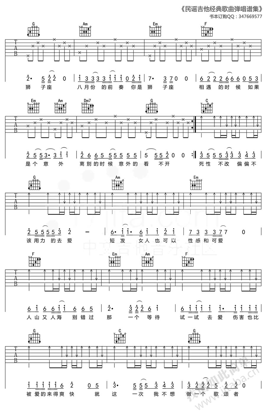 当前位置:琴谱网>吉他弹唱>狮子座