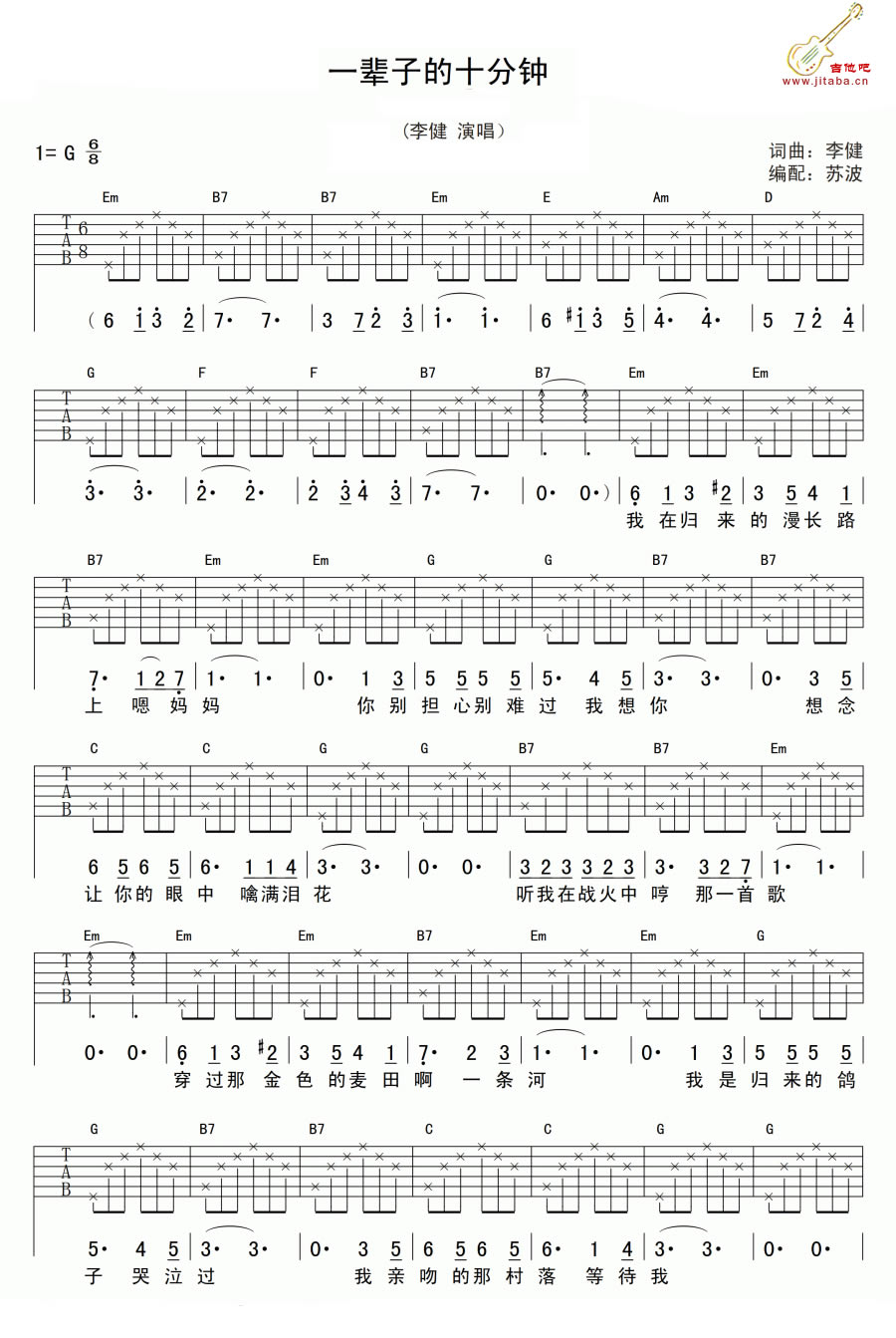 一辈子的十分钟吉他谱 - 李健 - 吉他弹唱谱