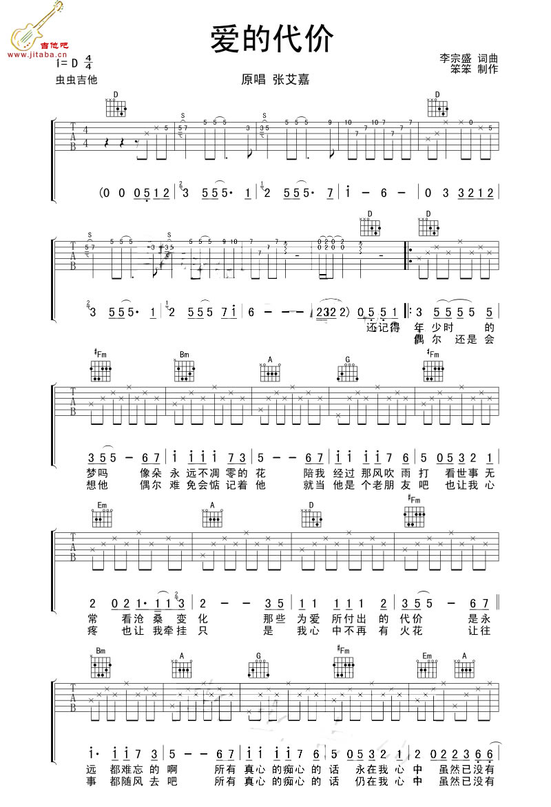 爱的代价吉他谱 - 张艾嘉 - 吉他弹唱谱