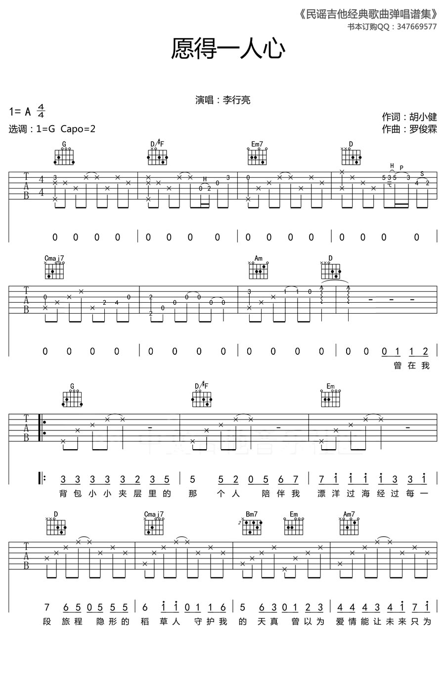 愿得一人心吉他谱 - 李行亮 - G调吉他弹唱谱 - 原版
